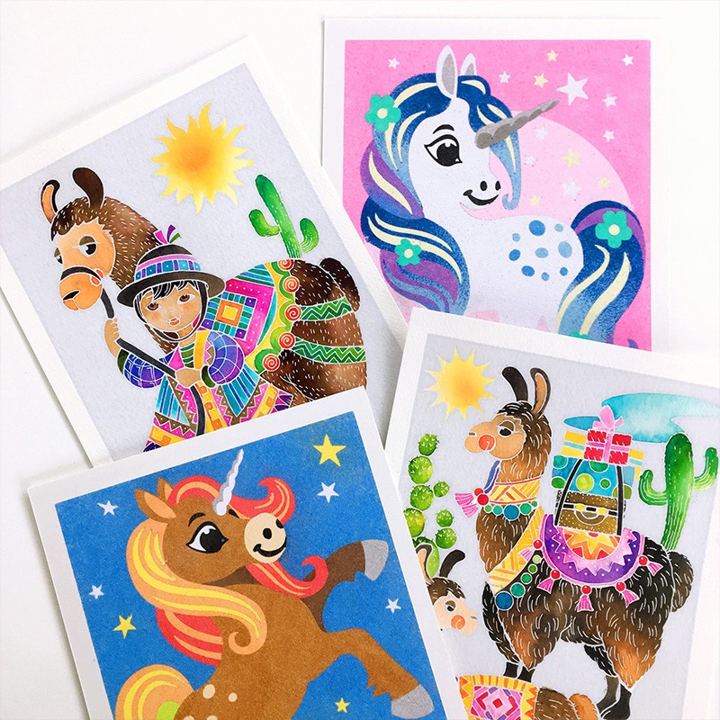 Акварельная раскраска "Ламы"