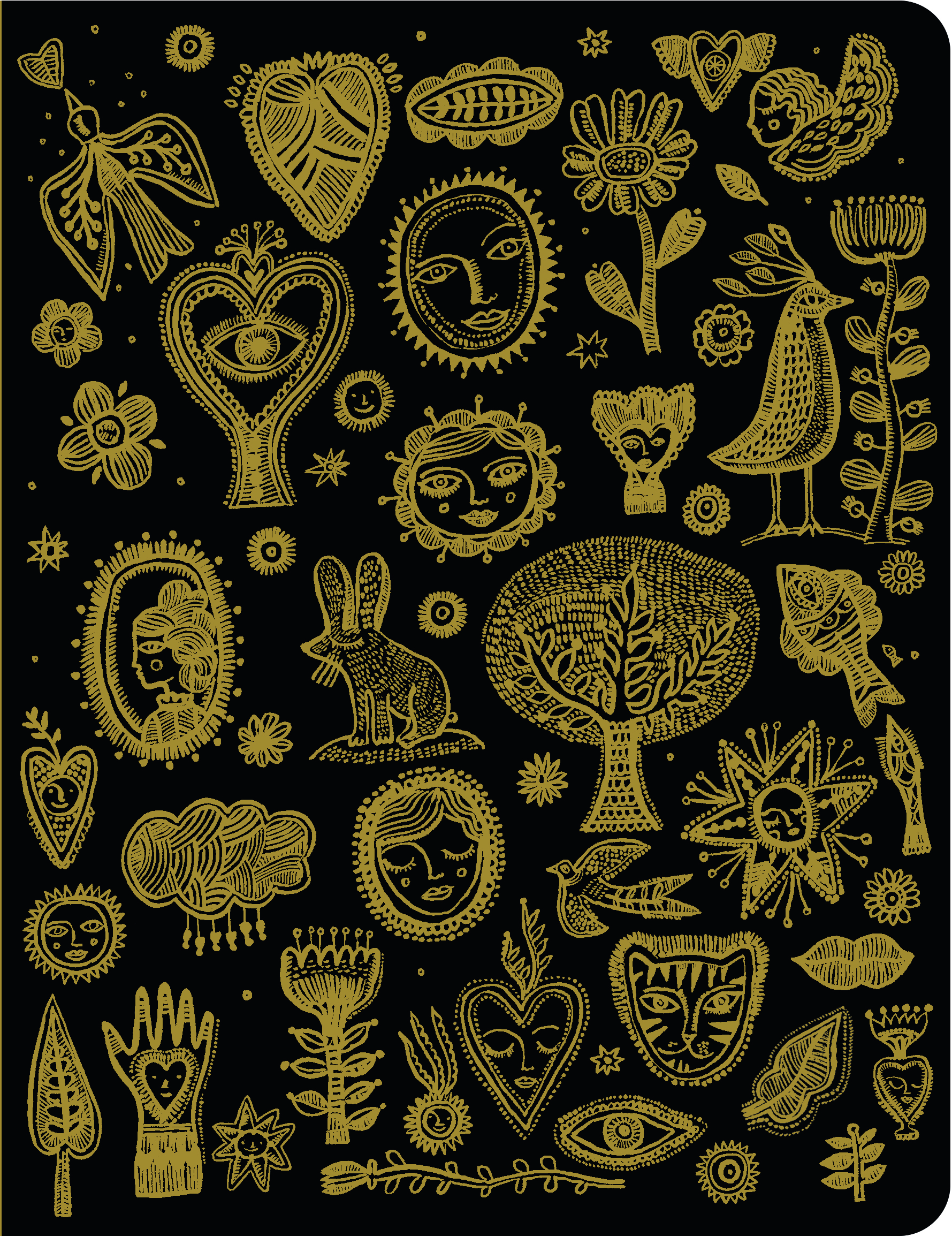 Блокнот «Аурелия» от французского бренда Djeco порадует ценителей стильных канцелярских принадлежностей. В блокноте 48 линованных страниц, дополненных небольшими минималистичными рисунками. На черной обложке — красивые золотые иллюстрации, которые переливаются на свету.