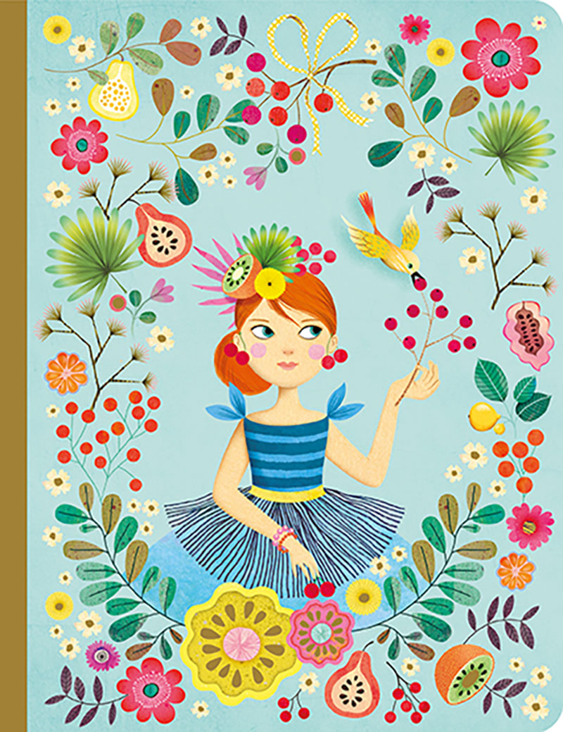 Блокнот «Роуз» от французского бренда Djeco порадует ценителей стильных канцелярских принадлежностей. В блокноте 48 линованных страниц, иллюстрированных небольшими веселыми рисунками. На обложке — яркий летний пейзаж. На свету иллюстрация красиво переливается.
