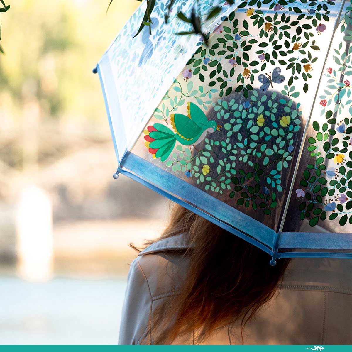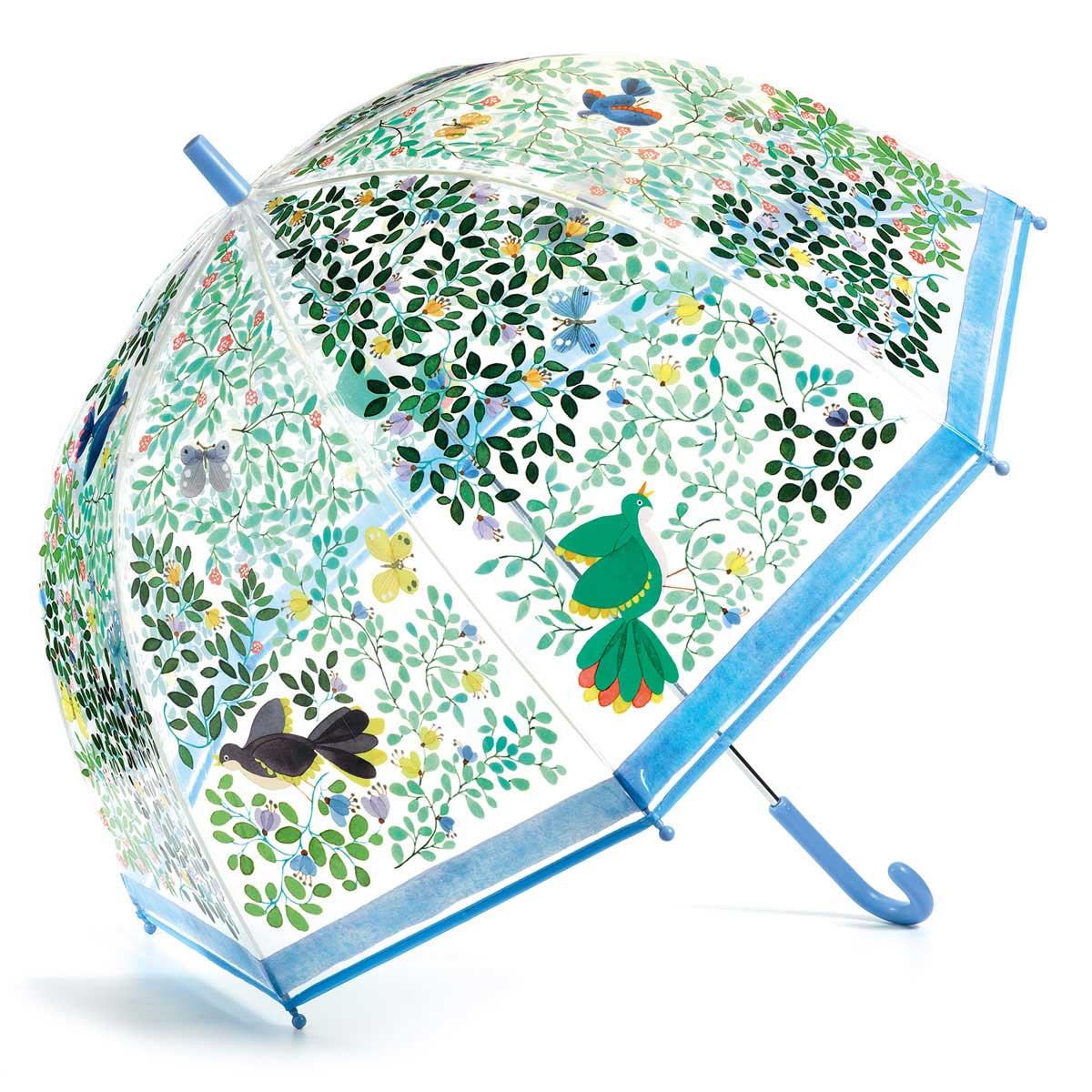 С зонтом «Дикие птицы»  от французского бренда Djeco даже дождливый день превратится в веселое приключение. Сам зонт прозрачный, на него нанесен привлекательный весенний паттерн. Зонтик открывается и закрывается вручную, что позволяет управлять им без риска прищемления пальцев.