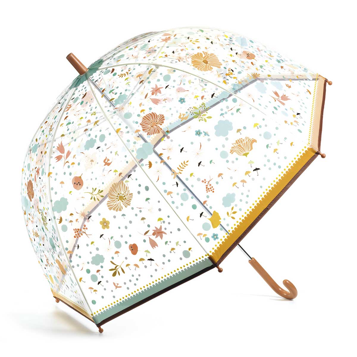 С зонтом «Маленькие цветы» от французского бренда Djeco даже дождливый день превратится в веселое приключение. Сам зонт прозрачный, на него нанесен привлекательный весенний паттерн. Зонтик открывается и закрывается вручную, что позволяет управлять им без риска прищемления пальцев.