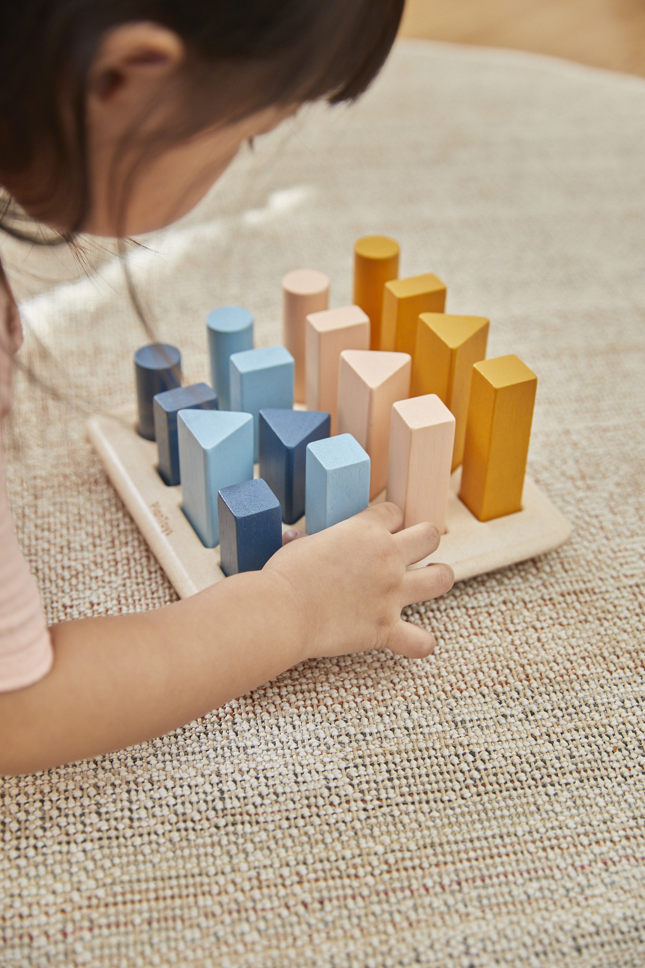 Сортер «Доска с геометрическими фигурами» – это первая игрушка, созданная компанией PlanToys. Впервые сортер появился в продаже в 1981 году, и до сих пор он является одной из самых популярных и хорошо продуманных развивающих игр.