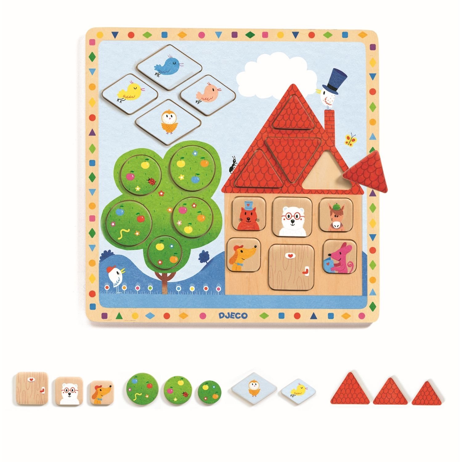 Удивительная игра "Лудигео" от известного французского бренда Djeco представляет собой забавную деревянную рамку-вкладыш, которая познакомит вашего ребенка с разнообразными геометрическими формами. Эта игра стимулирует развитие внимательности, мелкой моторики рук, логического мышления, зрительного восприятия и усидчивости. Кроме того, она помогает малышу научиться различать предметы по их силуэтам.