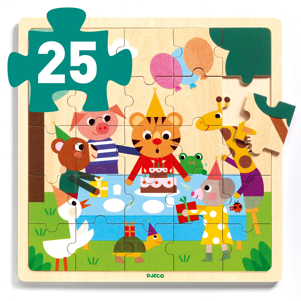 Деревянный пазл «Праздник» от французского производителя игрушек Djeco (Джеко) — это детская головоломка с весёлой картинкой, на которой милые животные собрались отпраздновать день рождения. Дети смогут сами воссоздать сюжет, чтобы вместе повеселиться с забавными зверюшками.