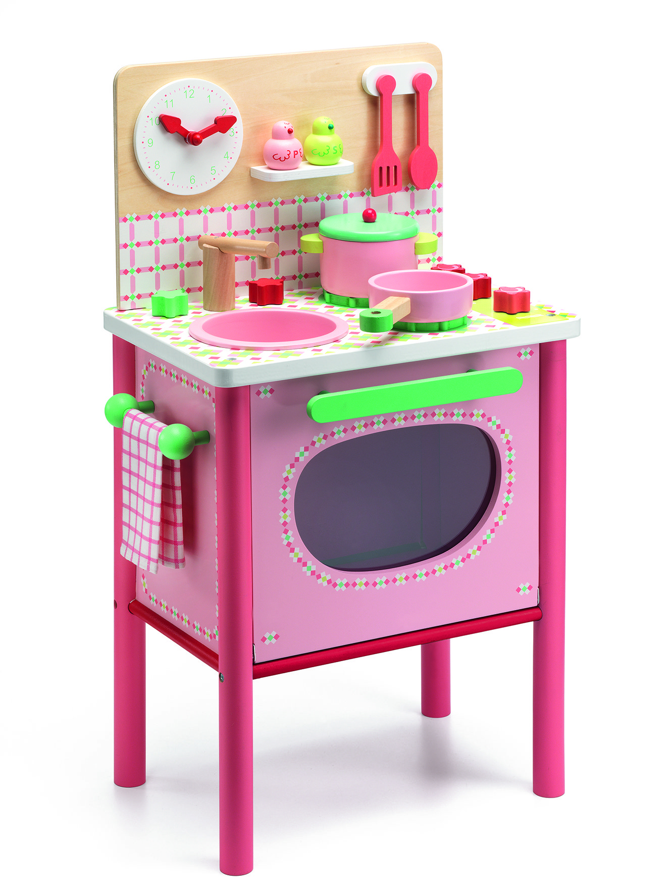 Плита Лилы — это деревянная плита на ножках, на которой дети могут готовить, как взрослые. Эта плита полностью оборудована кухонной мойкой и краном, духовкой и двумя конфорками: дети могут готовить, как шеф-повар, используя две предоставленные кухонные принадлежности, чтобы взбивать всевозможные вкусные кусочки. Встроенные часы для контроля времени приготовления. Не забудьте приправить еду перед подачей: солонки и перечницы хранятся на небольшой полке. Красочная и всеобъемлющая ролевая игра.