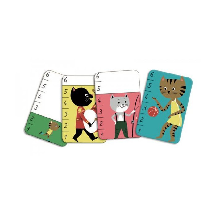Как и в природе, на карточках есть большая и маленькая кошка. Когда большая кошка сталкивается с маленькой, большая побеждает, но когда они одного размера, наступает время битвы!Новый взгляд на классическую боевую игру для малышей, которые находят свой путь на основе размера животных, используя карточки от 1 до 6. Веселье ждет!