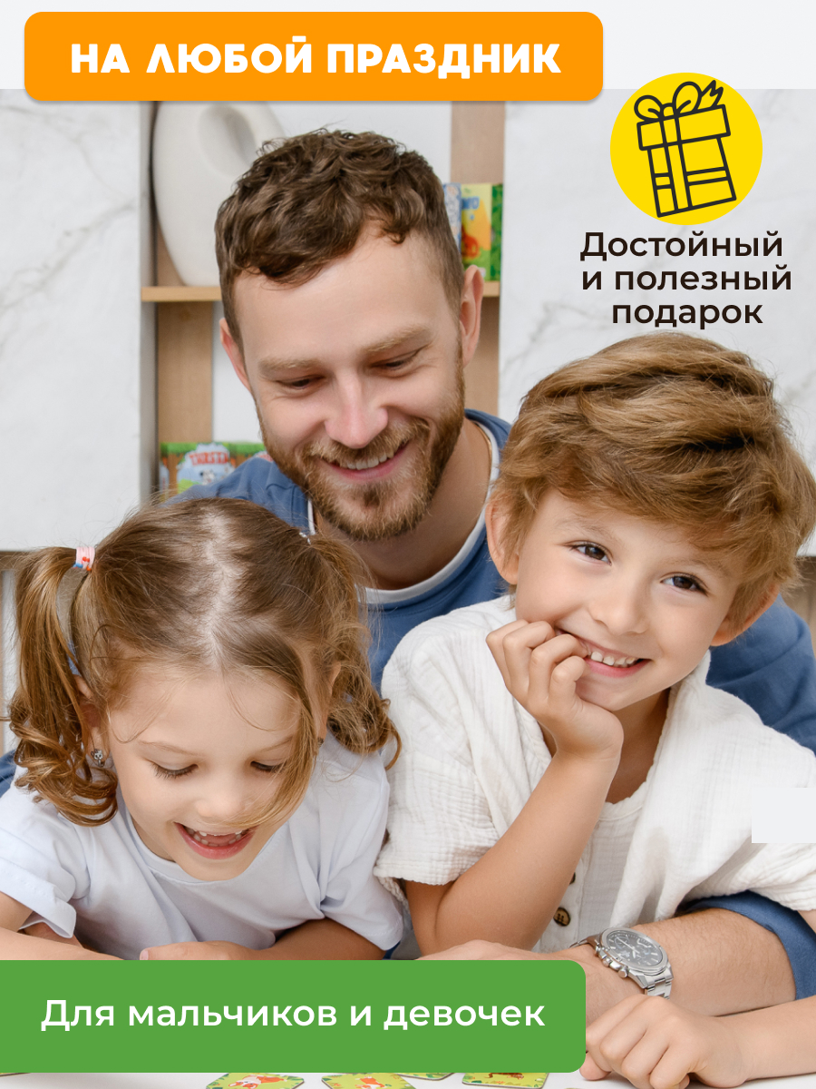 Содержимое: 36 карточек персонажей, 4 карточки-памятки с усложнениями, подробные правила игры, яркая подарочная упаковка.