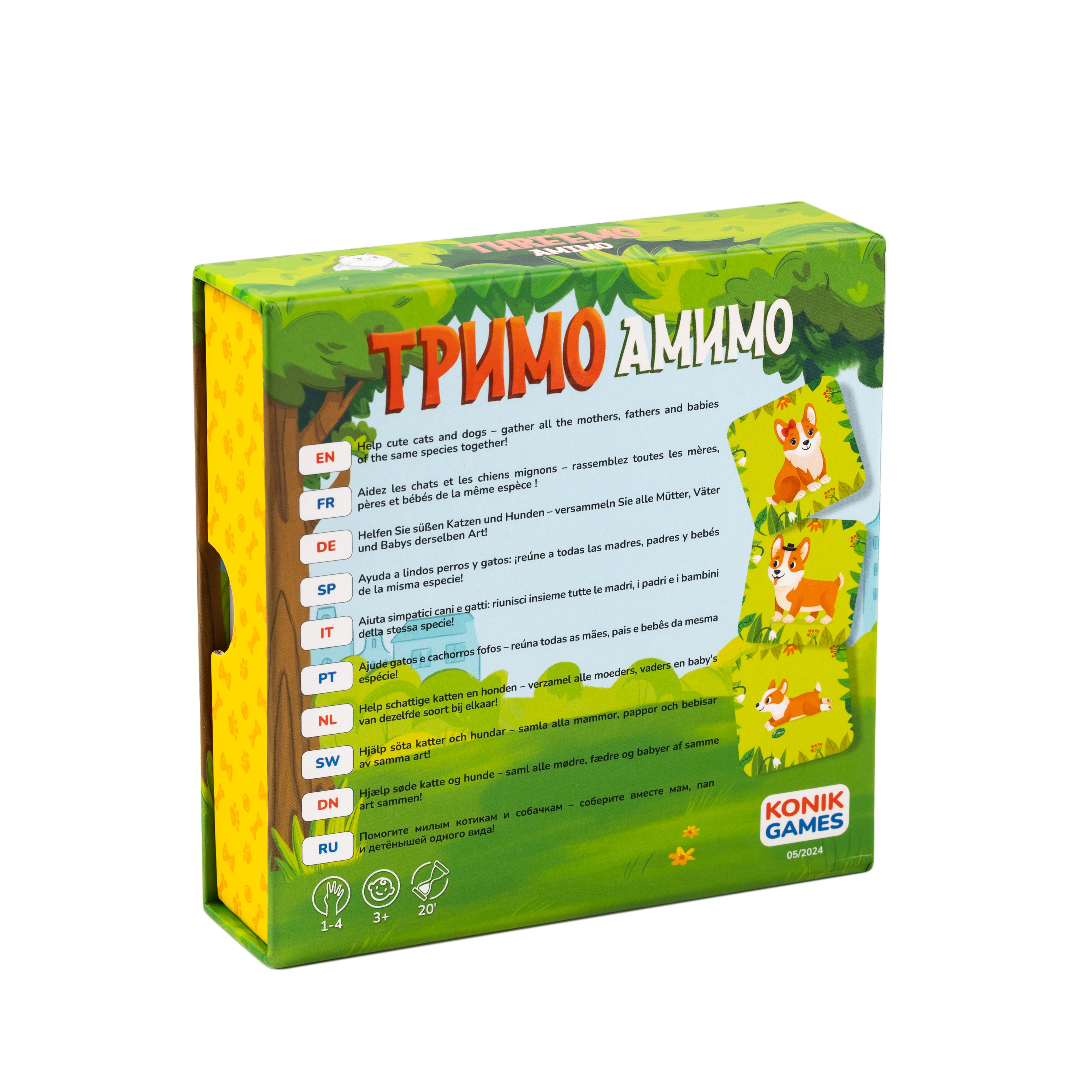 ТРИМО АМИМО от КОНИК ГЕЙМС отлично развивает память, внимание, логику и подходит для детей от 3 лет и всей семьи. Все иллюстрации созданы с душой и вдохновением, а благодаря красочной и плотной коробке эта настольная игра станет приятным подарком.
