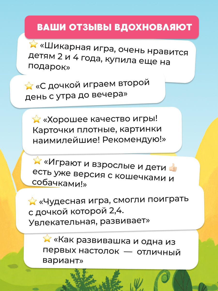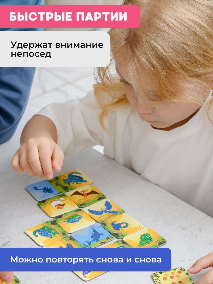 Игра подходит для детей от 3 лет, отлично развивает память, внимание и эрудицию.