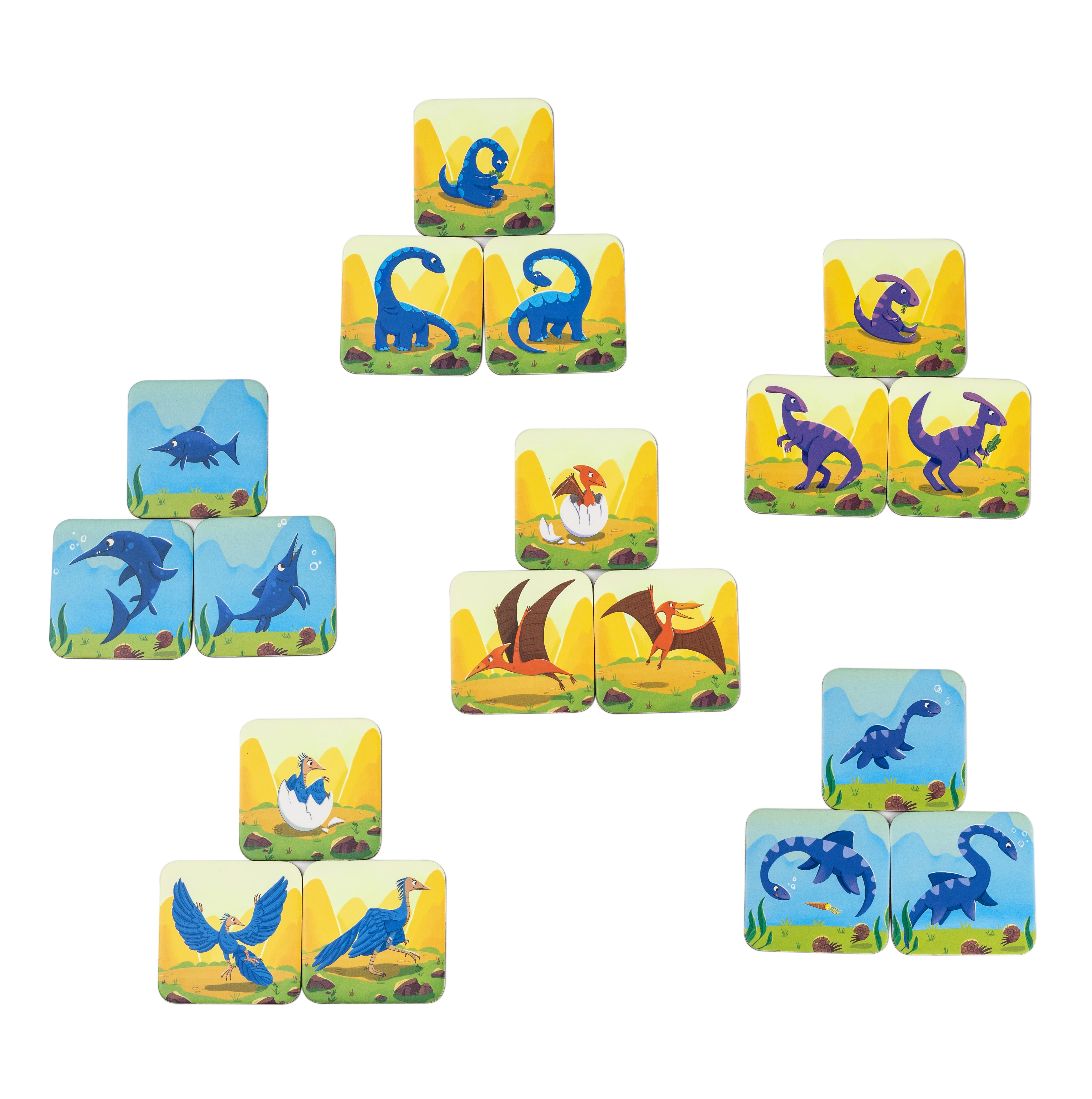 В THREEMO DINO вы оказываетесь в доисторической эпохе – из-за извержения вулкана все динозаврики перепутались. Соберите как можно больше всех мам, пап и малышей одного вида вместе!