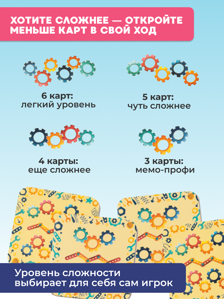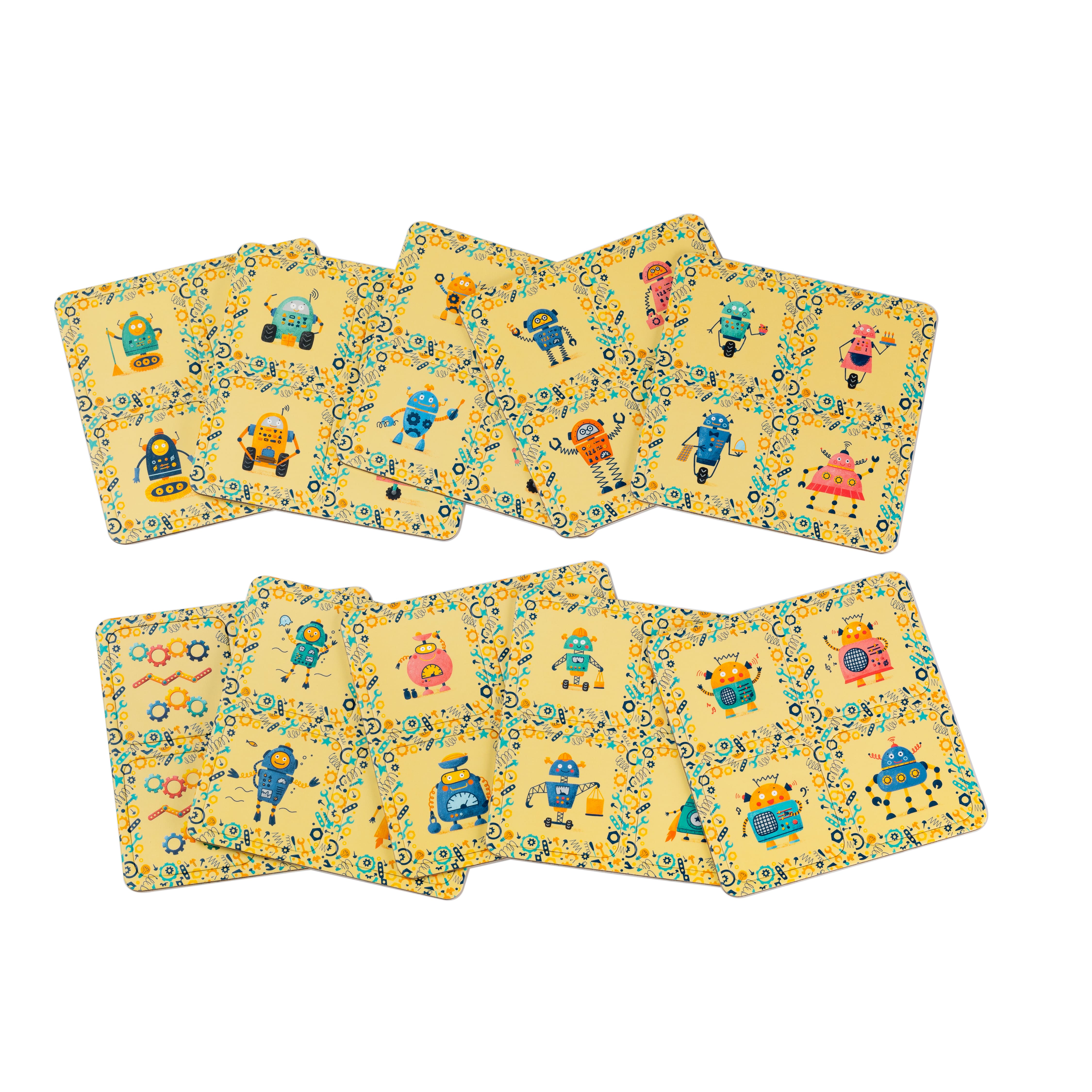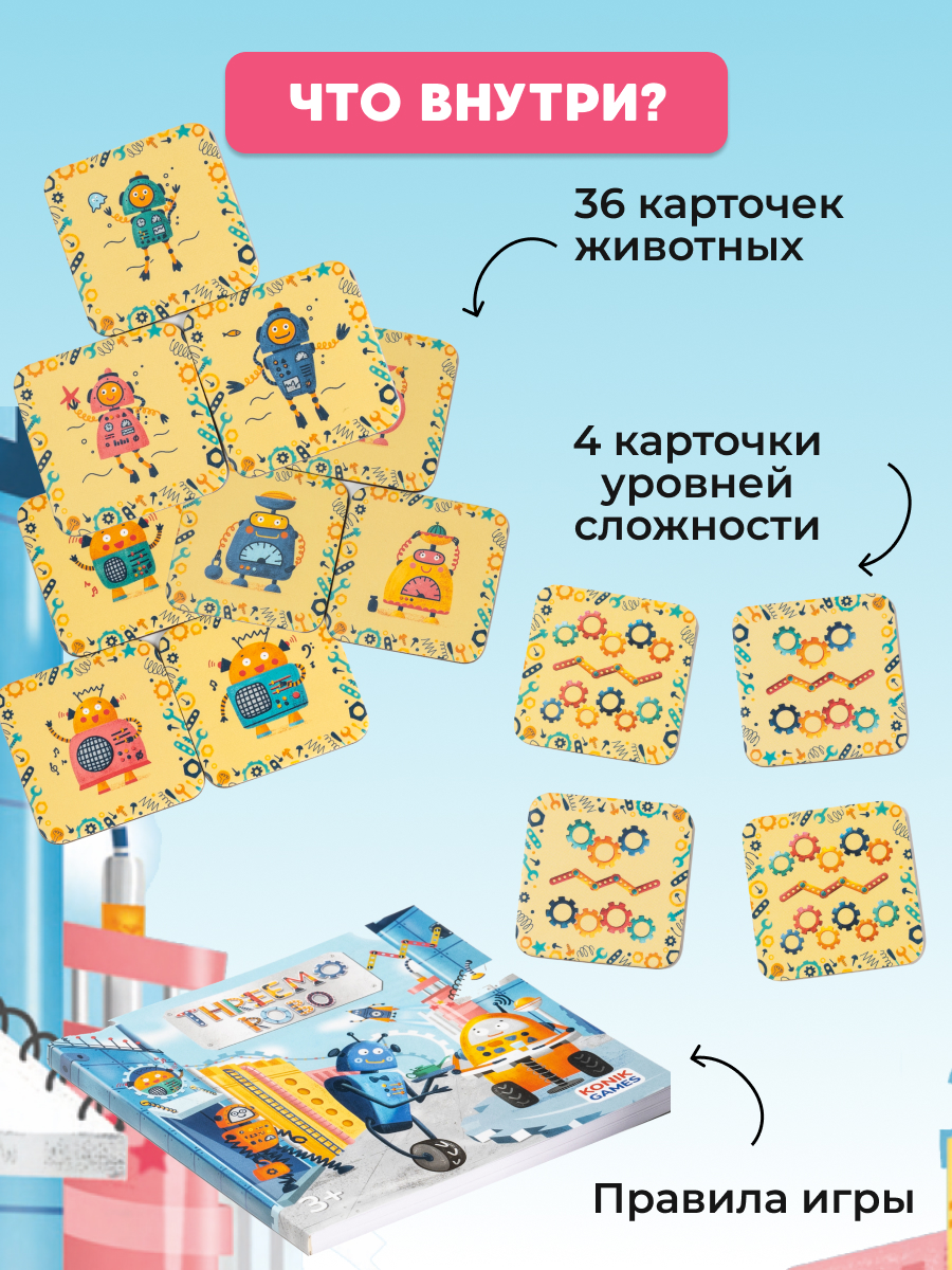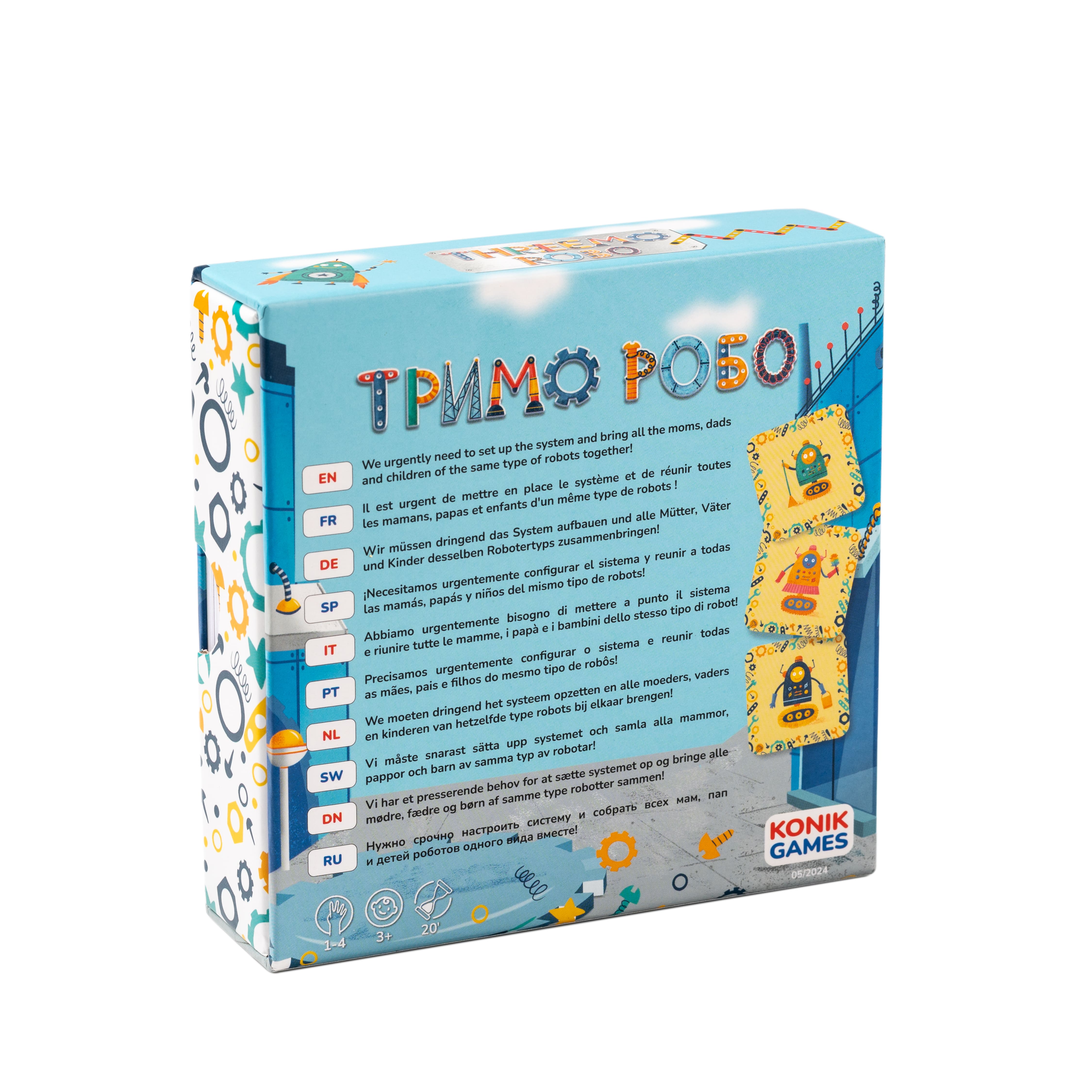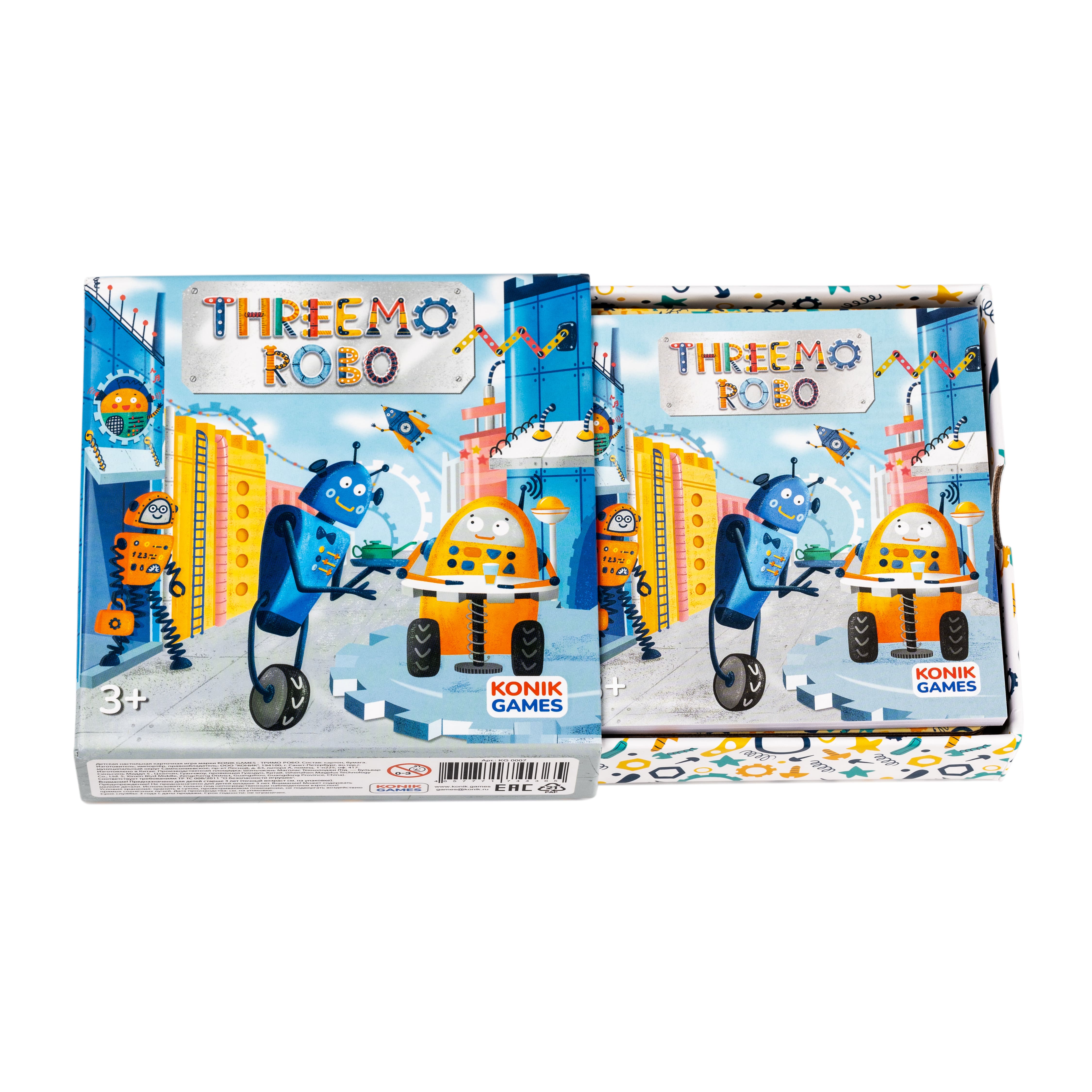 THREEMO ROBO от KONIK GAMES— это оригинальная вариация мемо для всей семьи. В ней нет ни одной одинаковой карточки! Зато есть 4 уровня сложности – каждый участник сможет подобрать для себя подходящий.