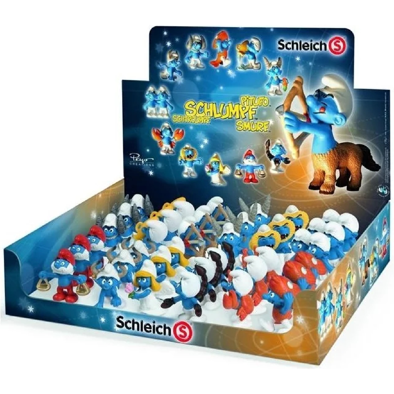 Набор фигурок Schleich «Знаки зодиака» представляет собой коллекцию выдуманных маленьких существ небесно-голубого цвета, живущих в лесах средневековой Европы. Эти фигурки, созданные по мотивам бельгийского мультфильма Peyo, копируют самых известных и любимых героев, а также волшебные домики для них.