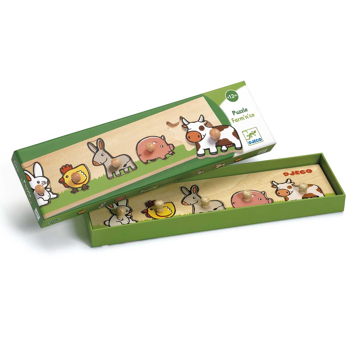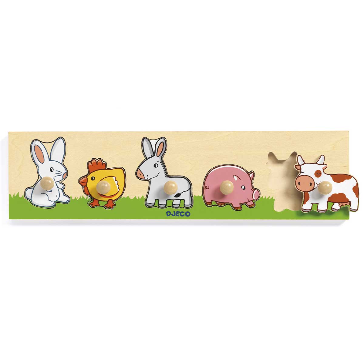 Развивающий пазл-вкладыш «Ферма» от Djeco познакомит малыша с миром животных.