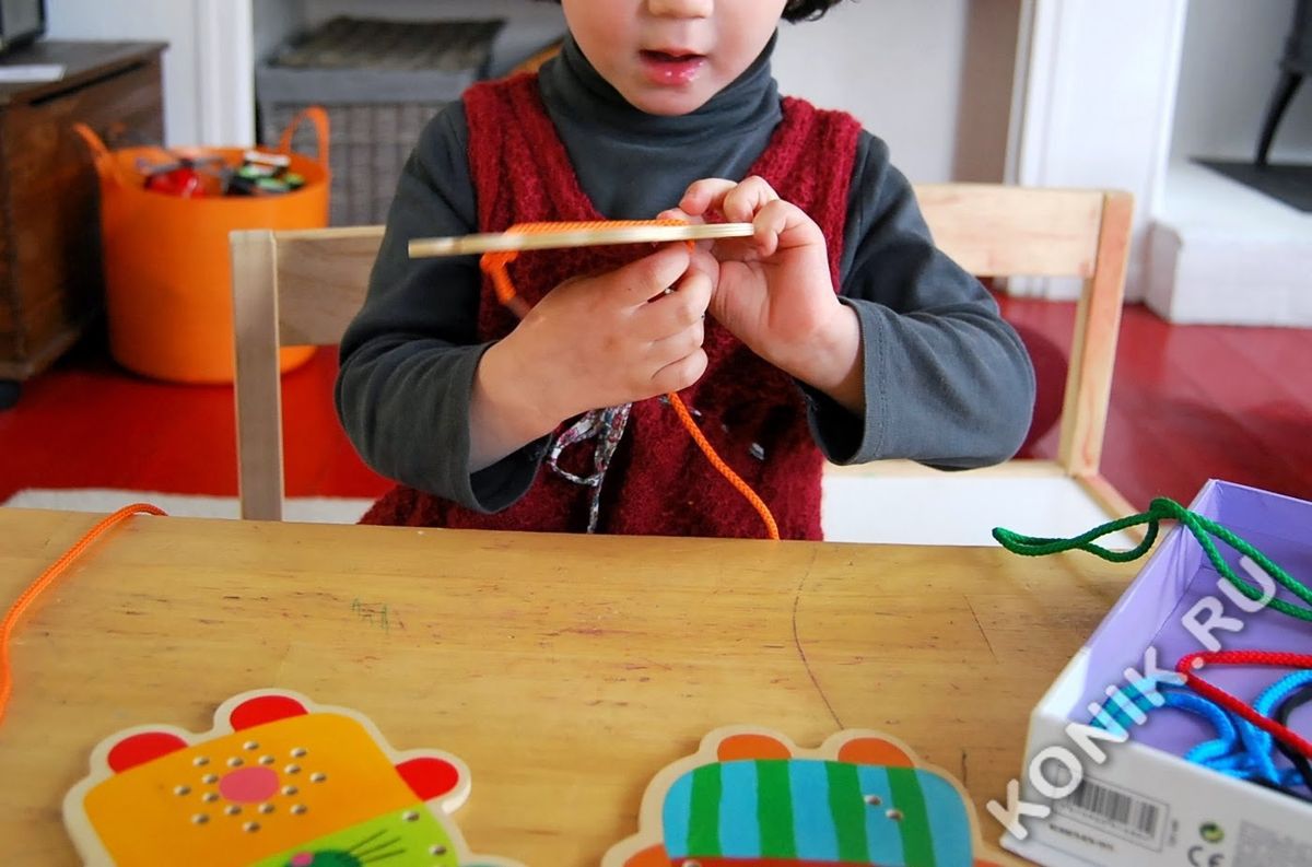 Игра прекрасно развивает фантазию и воображение ребёнка, детскую моторику, логическое мышление и сообразительность. Более, того она поможет малышу в легкой игровой форме освоить завязывание шнурков и навыки шитья!
