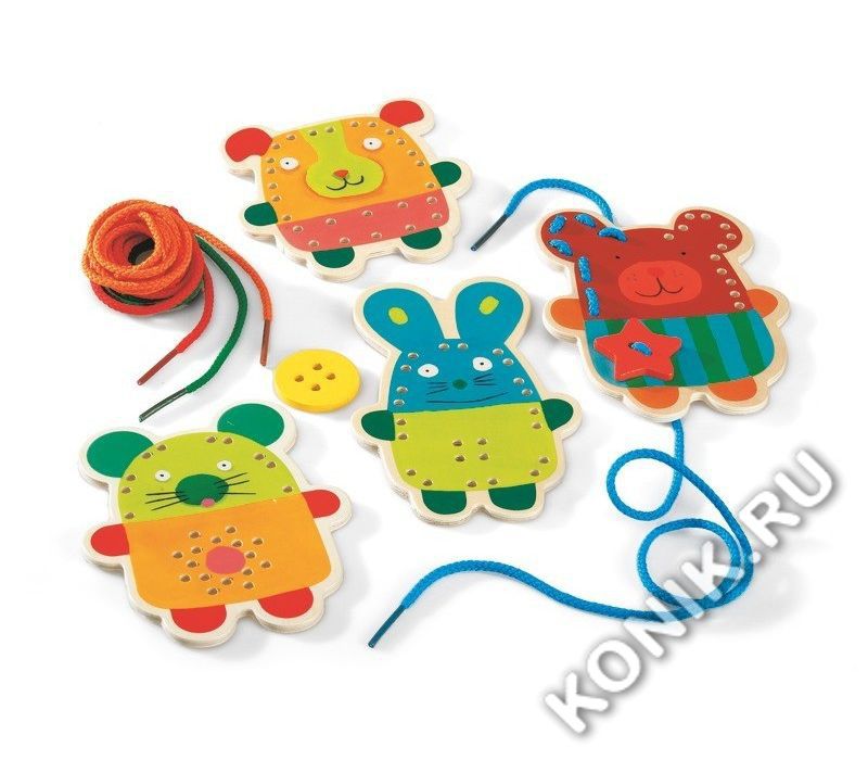 Шнуровка «Зверюшки» от французского производителя Djeco — превосходная развивающая игра, которая обязательно понравится каждому ребёнку. что поможет вашему ребёнку в легкой игровой форме освоить завязывание и навыки шитья!