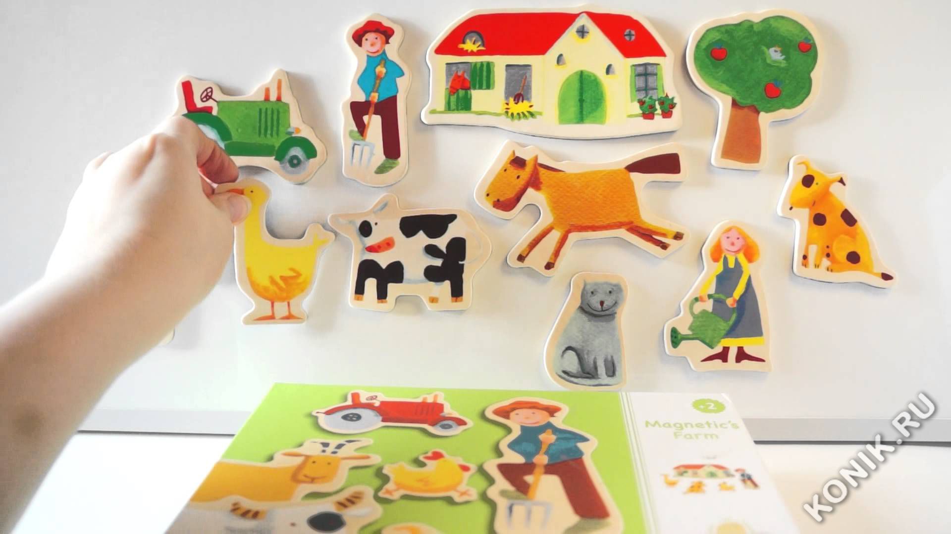 Насладитесь увлекательной и незабываемой игрой "Ферма" от известного французского производителя Djeco. Она окунет вашего ребенка в веселый и привлекательный мир фермерской жизни, познакомив его с милыми обитателями: коровой, козой, лошадками, петушком и многими другими. Красочные и добрые рисунки персонажей привлекут внимание детей, захватывая их воображение. Отличительной особенностью игры является возможность крепления фигурок на любой магнитной поверхности, а также их использование для украшения холодильника.
