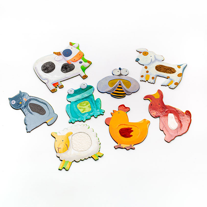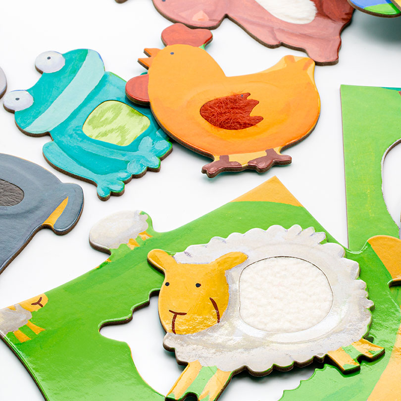 Благодаря такому досугу у детей отлично развивается логика, память и внимательность, он повторяет цвета, а с помощью текстурного покрытия фигурок, изучает зверят,