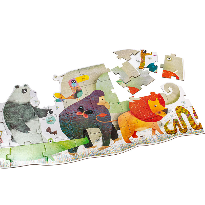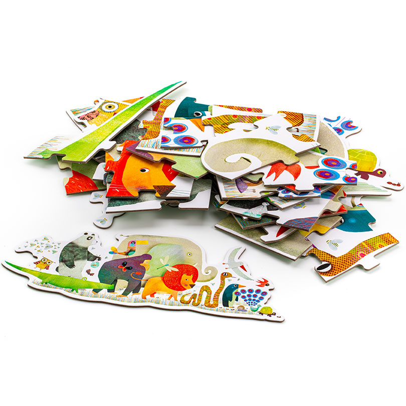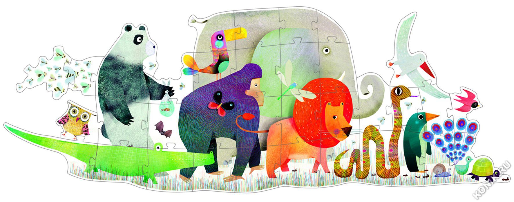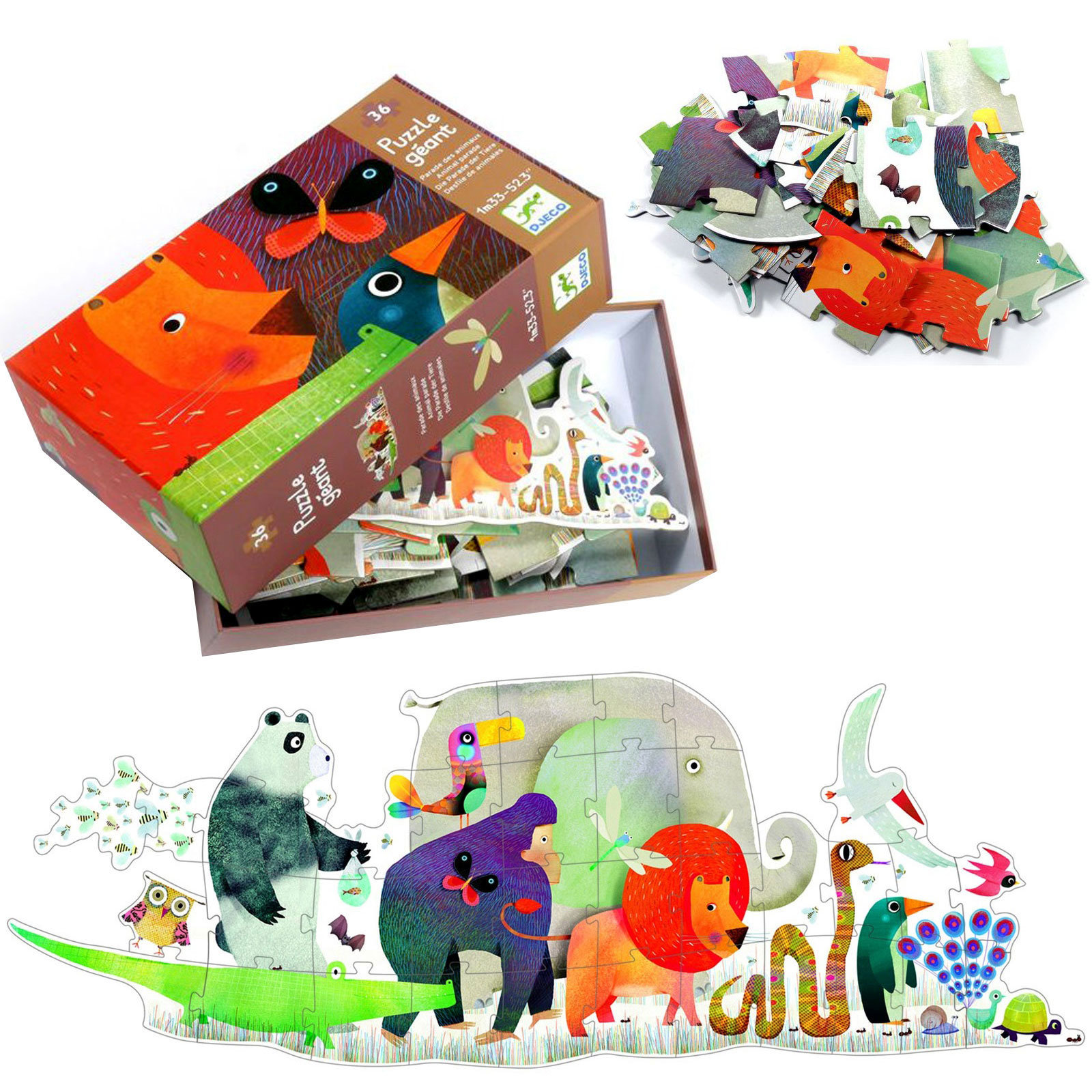 Детский пазл-гигант «Животные» от французского производителя Djeco (Джеко) — это оригинальная и яркая крупноформатная головоломка с изображением разных забавных животных, а из-за крупного размера деталей она подойдет даже самым маленьким малышам. Такое занятие отлично развивает логику, внимательность и тренирует мелкую моторику ручек, что сильно влияет на хорошую память и быстрое мышление.