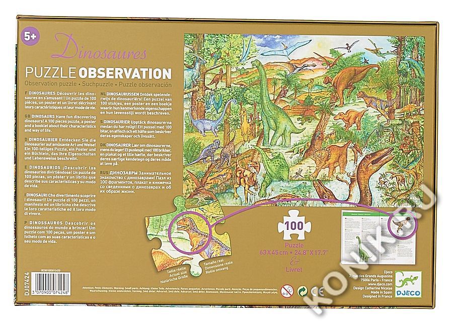 Детский пазл с буклетом «Динозавры» от французского производителя Djeco (Джеко) — это увлекательная красочная головоломка, которая надолго увлечет ребёнка и станет замечательным развивающим подарком. Ребёнку предстоит собрать картину доисторических времен, где среди диковинных растений прогуливаются и летают тираннозавры, брахиозавры и динозавры, а в буклете он может найти много новой интересной информации о динозаврах.