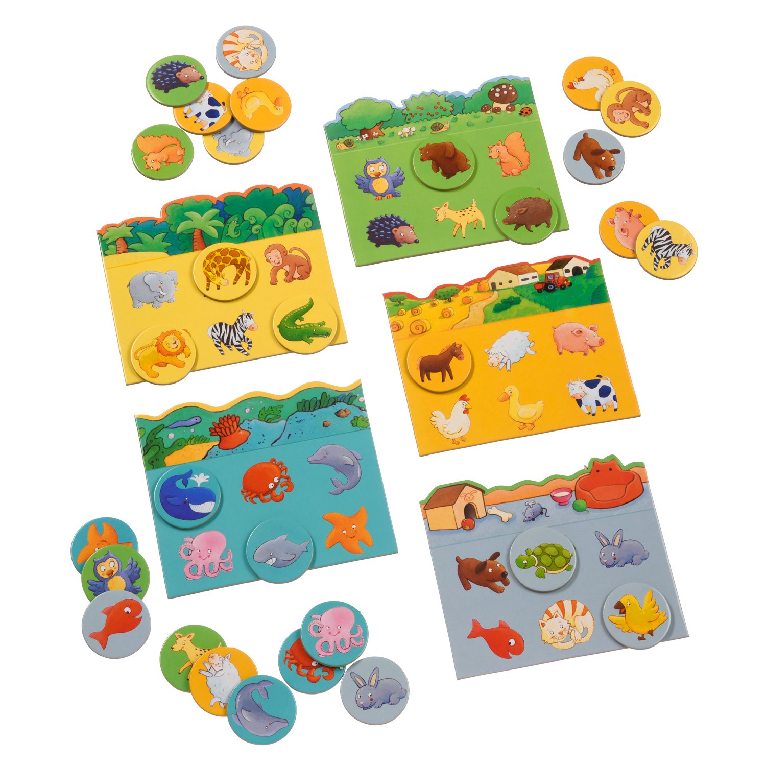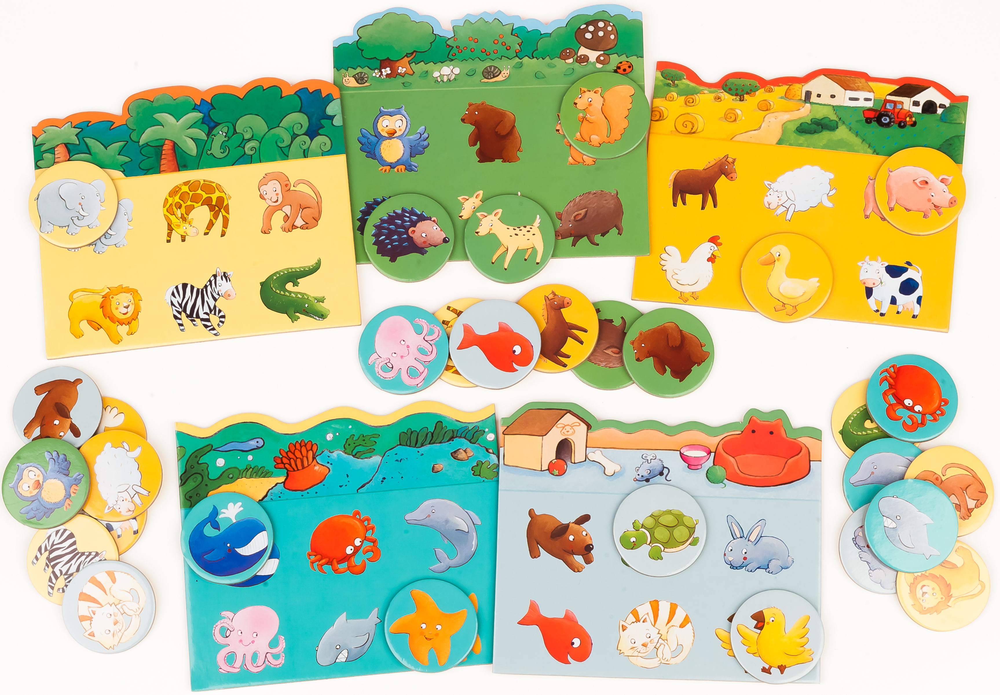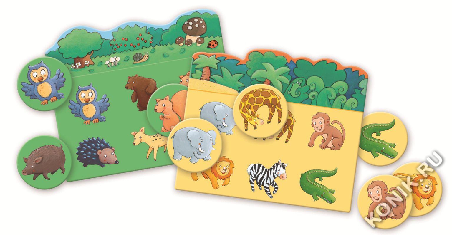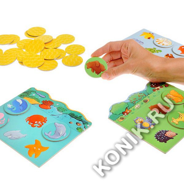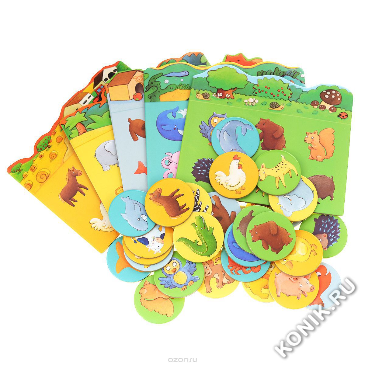 5 игровых базовых карточек с темами: обитатели леса, джунглей, подводного мира, фермы и домашние питомцы;