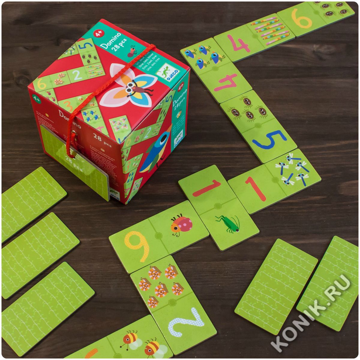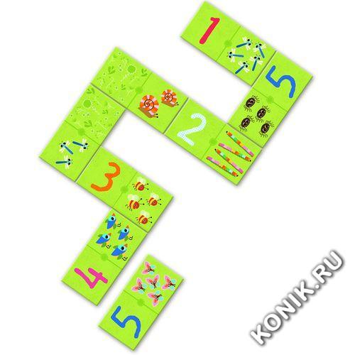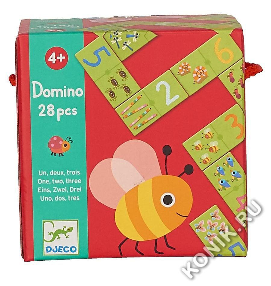 Детское домино «Раз, два, три» от французской компании Djeco – это замечательный игровой набор для малышей, с помощью которого они смогут запомнить цифры и изучить основы счета.