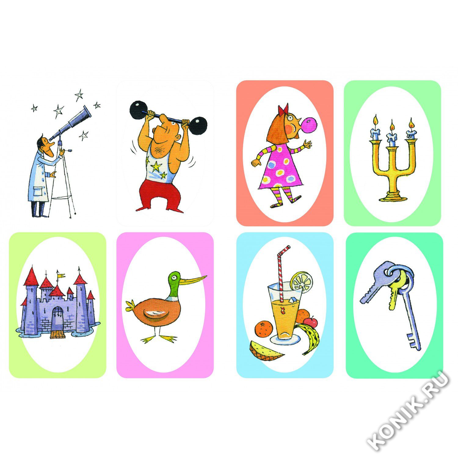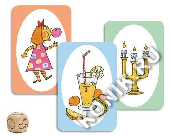 Игрокам раздается по 5 карт. Оставшееся карточная колода кладется на стол. Для начала игры бросается игральная кость. Далее, в зависимости от того, какая картинка выпала на кости, игроки должны будут составить логическую цепочку, веселый рассказ или свой автопортрет. Чье повествование, по усмотрению судьи, будет лучшим, тот и забирает карточки себе. Выигрывает тот, у кого по итогу будет их будет больше всех.