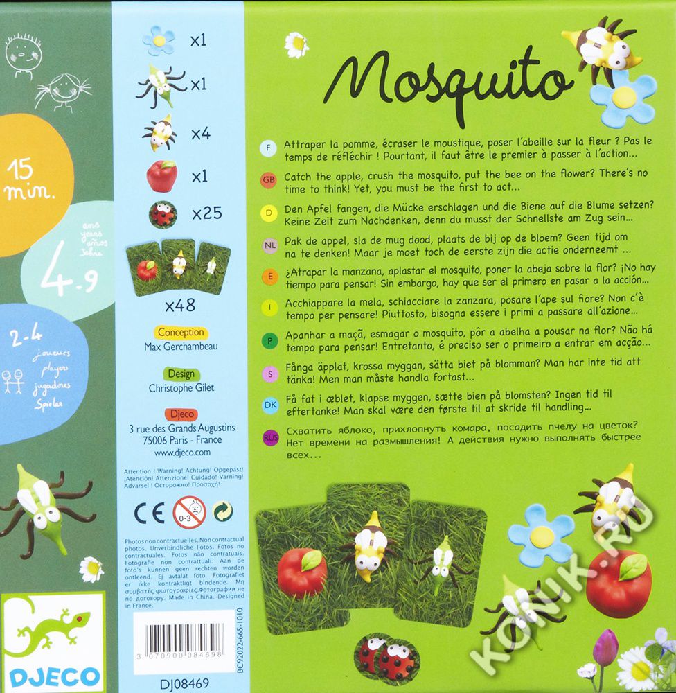 Детская карточная игра «Москито» станет прекрасным времяпровождением для вашего ребёнка. В процессе веселого занятия можно познакомиться с насекомыми, цветами и фруктами, что будет способствовать развитию логического мышления, ловкости, внимательности и хорошему настроению. Кто быстрее хлопнет комара? Самый быстрый получает жетон с божьей коровкой. Кто накопит их больше всех, тот и одерживает победу.