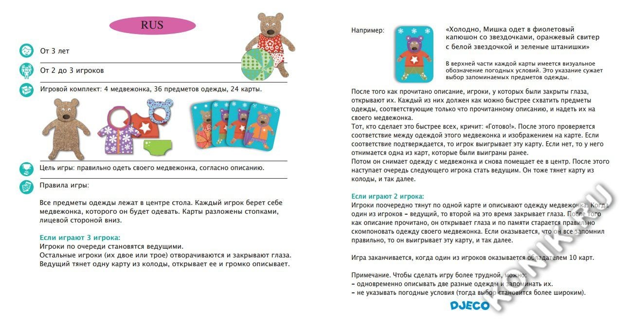 «Одень мишку!» от французской компании Djeco - это веселая и динамичная игра на развитие памяти.