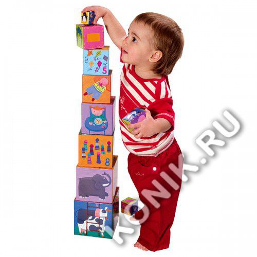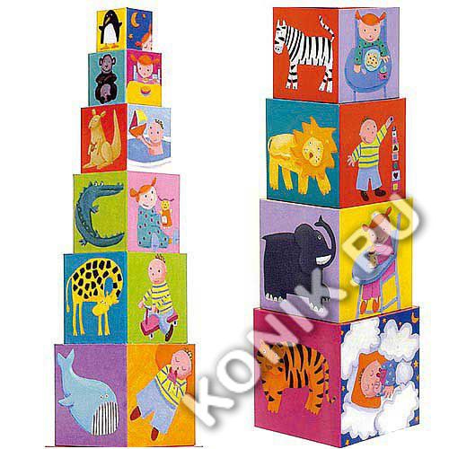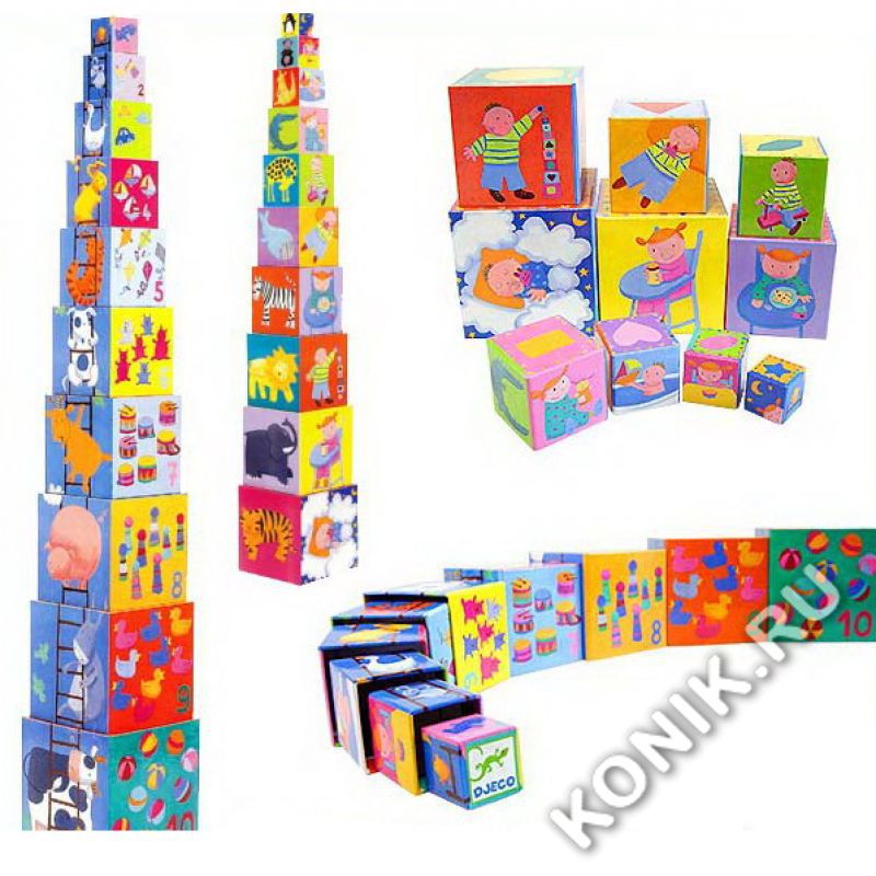 10 толстых картонных кубиков, которые нужно сложить вместе, складывайте и сбивайте столько раз, сколько захотите! Дети складывают кубики так, чтобы иллюстрации образовывали логическую последовательность.