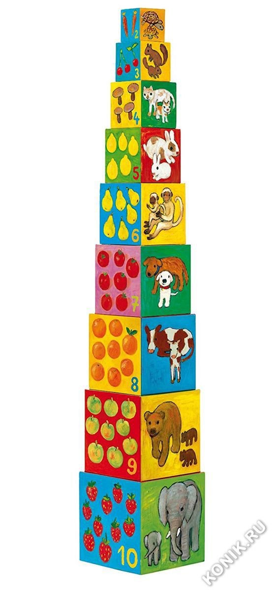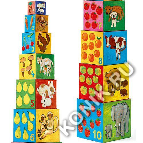 10 толстых картонных кубиков, которые нужно сложить вместе, складывайте и сбивайте столько раз, сколько захотите! Дети складывают кубики так, чтобы иллюстрации образовывали логическую последовательность.