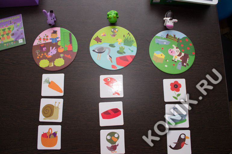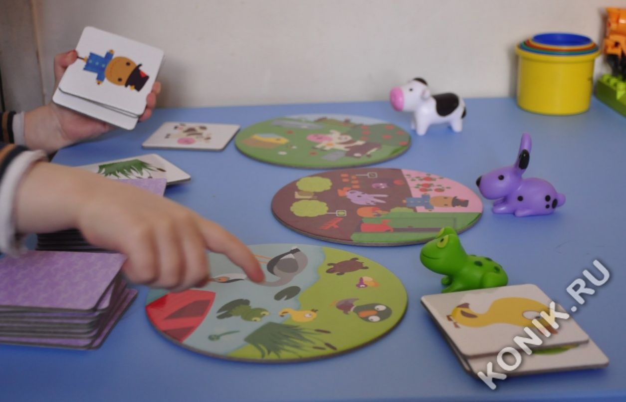 Кролик живет на грядке с овощами, корова - на лугу, а лягушка - в пруду. К какой среде обитания относится каждый предмет? Каждый ребенок должен взять то, что он знает, и применить логику, чтобы найти правильные совпадения.