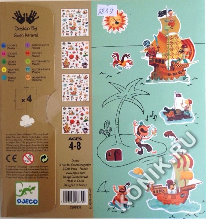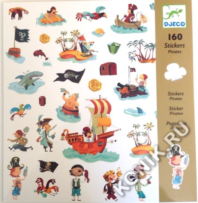 Набор из 160 наклеек на увлекательную тему пиратов. Острова, пиратские корабли, сокровища – в этом наборе есть все, что дает волю детскому воображению! Дети могут расположить множество наклеек так, как им нравится, создавая свои собственные сюжеты, или использовать их для украшения всего, что они захотят!
