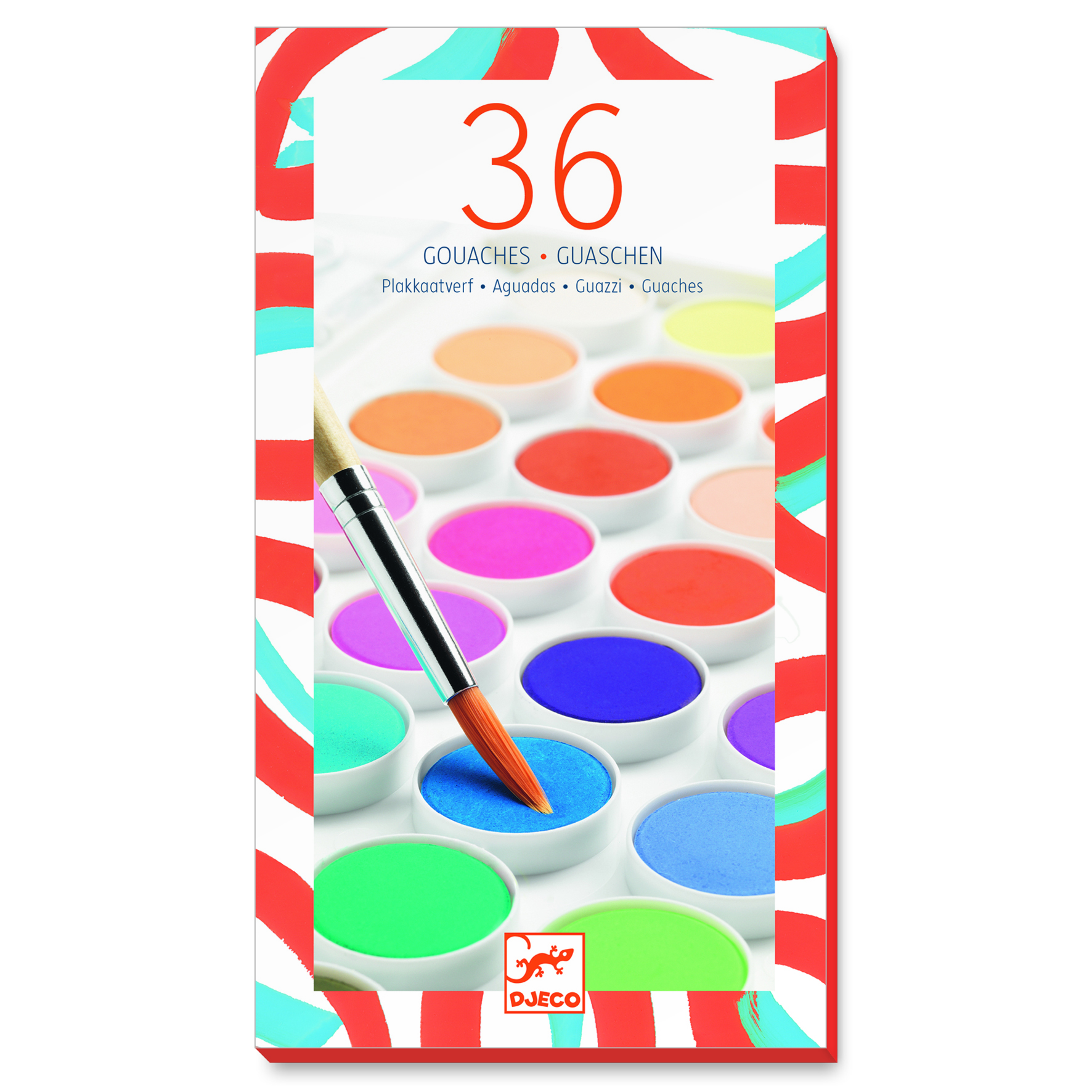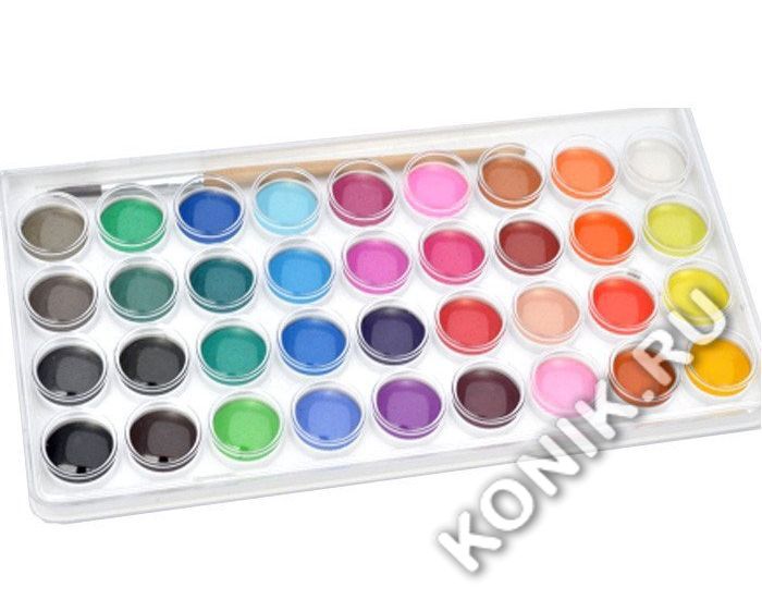 Эта большая палитра матовых акварельных красок содержит 36 цветов, 1 кисть и тарелку для смешивания. По окончании работы все складывается в коробку.
