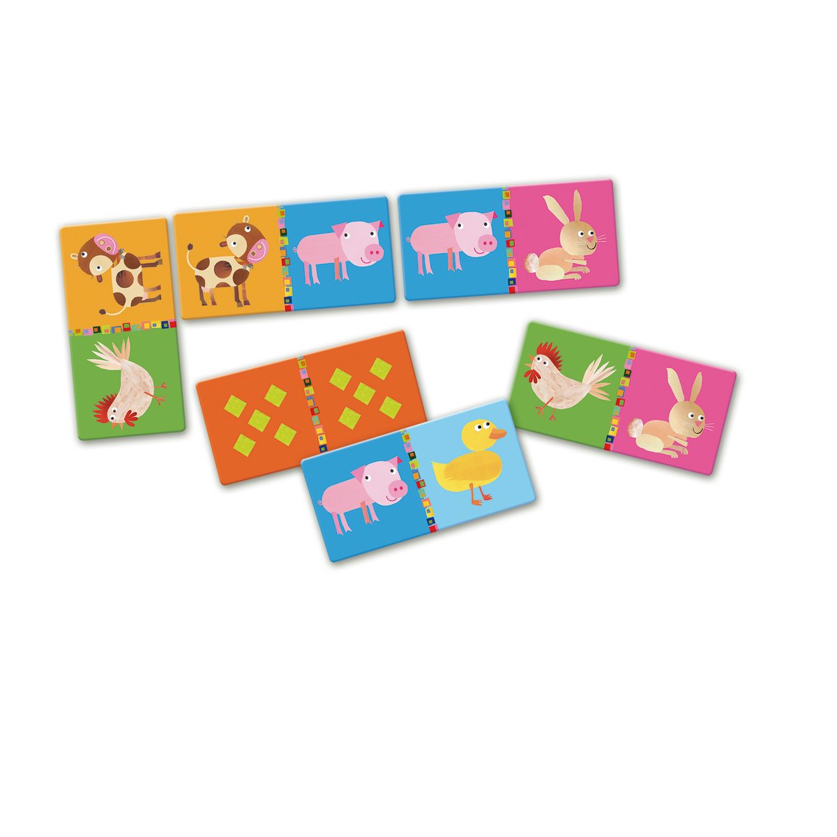 Детское домино «Животные фермы» от французского производителя игрушек Djeco – забавная увлекательная игра с яркими карточками на смекалку и сообразительность. Она станет отличным развлечением на любом детском празднике или в семейном кругу.