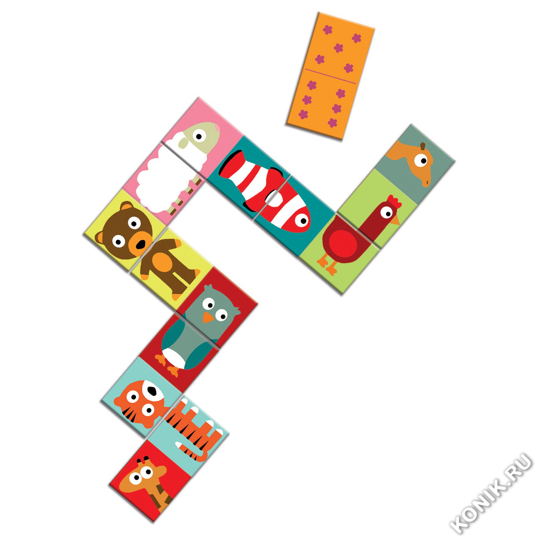 Детское домино «Животные» от французского производителя игрушек Djeco – увлекательная настольная игра с яркими карточками на смекалку и сообразительность, более того такой досуг отлично развивает логическое мышление, внимательность и тренирует мелкую моторику с самых ранних лет.