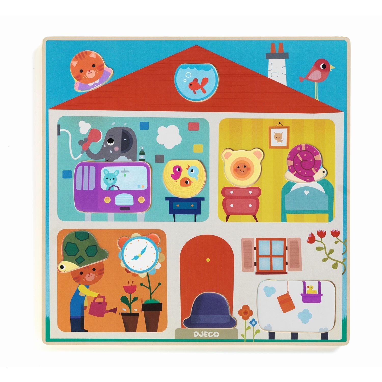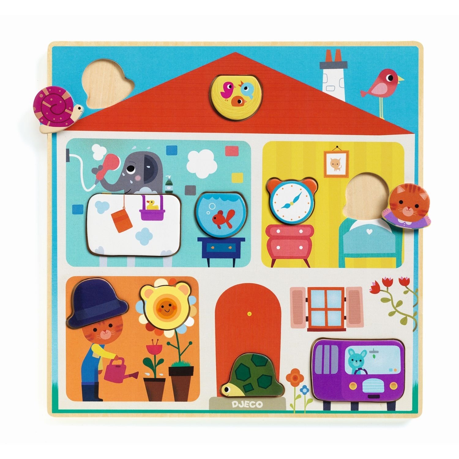 Двухслойный пазл «Найди правильное место» — необычная деревянная головоломка от французского бренда Djeco (Джеко). Детали пазла могут подходить в несколько мест сразу, а чтобы собрать пазл правильно, малышу нужно подумать, какая деталь подходит по смыслу в то или иное место на картинке.
