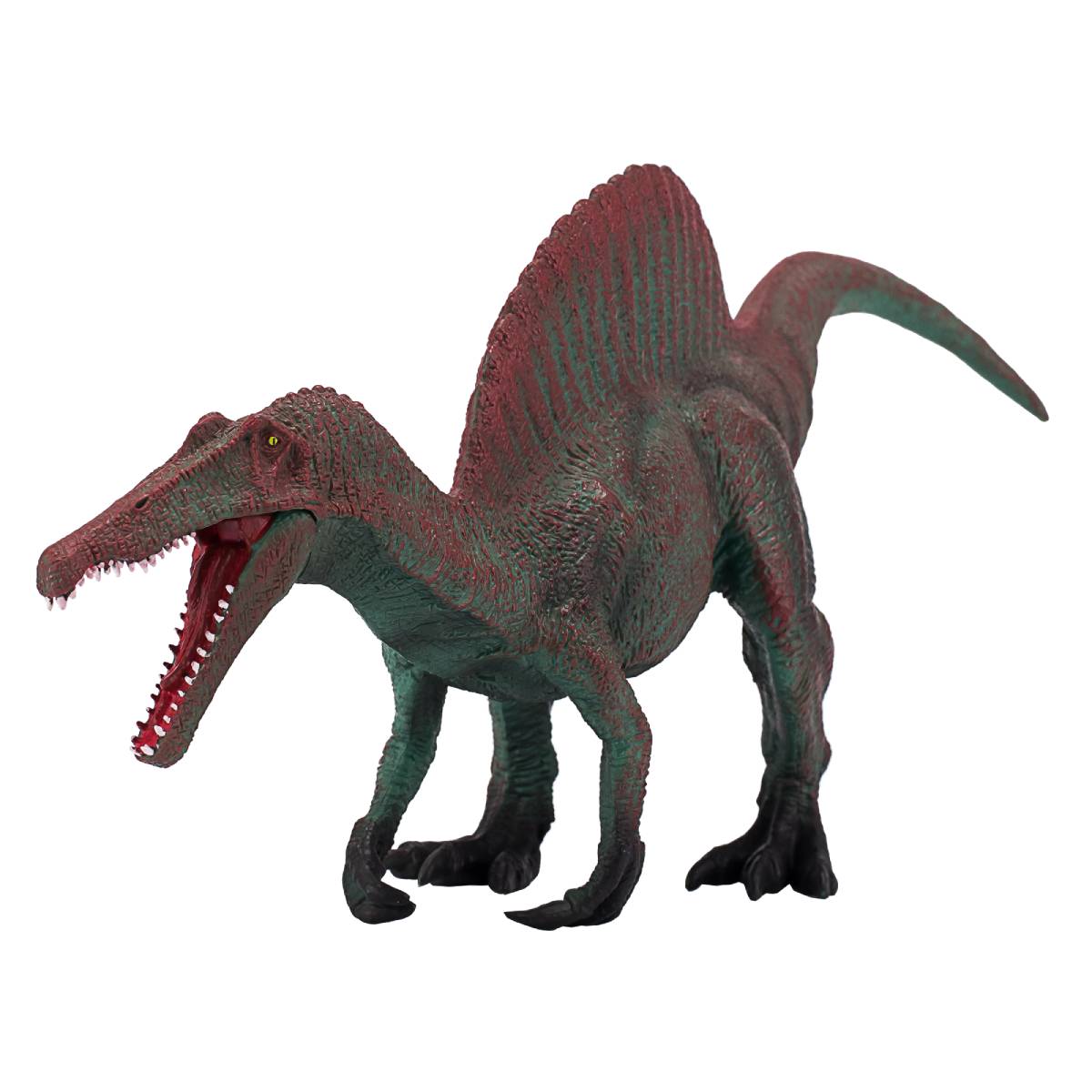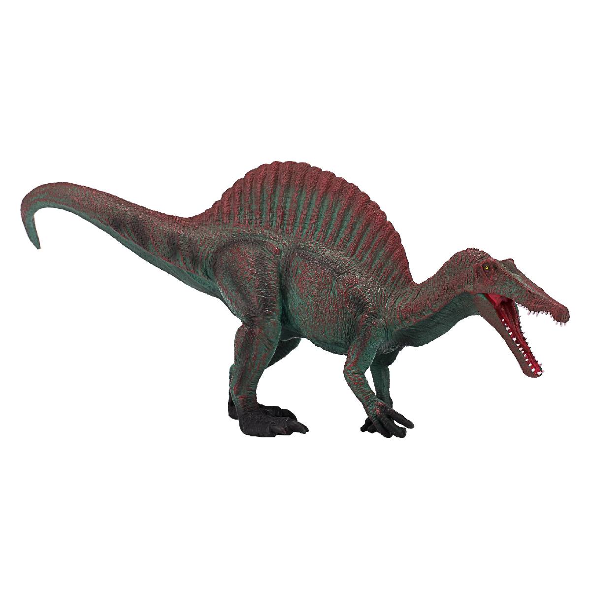 У спинозавра были мощные челюсти с прямыми зубами. У большинства других плотоядных динозавров зубы были изогнутыми. Ученые считают, что это означает, что они трясли свою добычу, чтобы оторвать куски.
