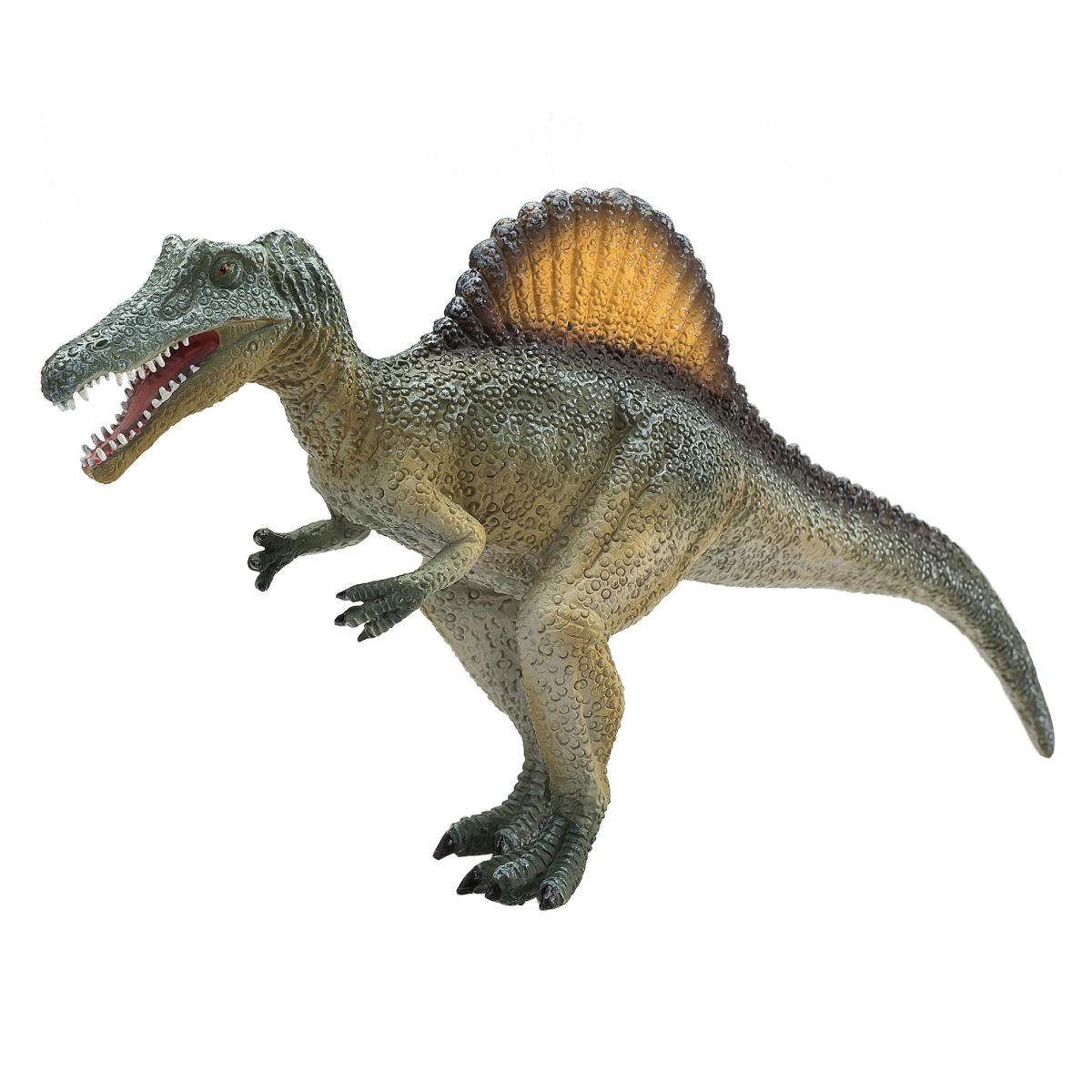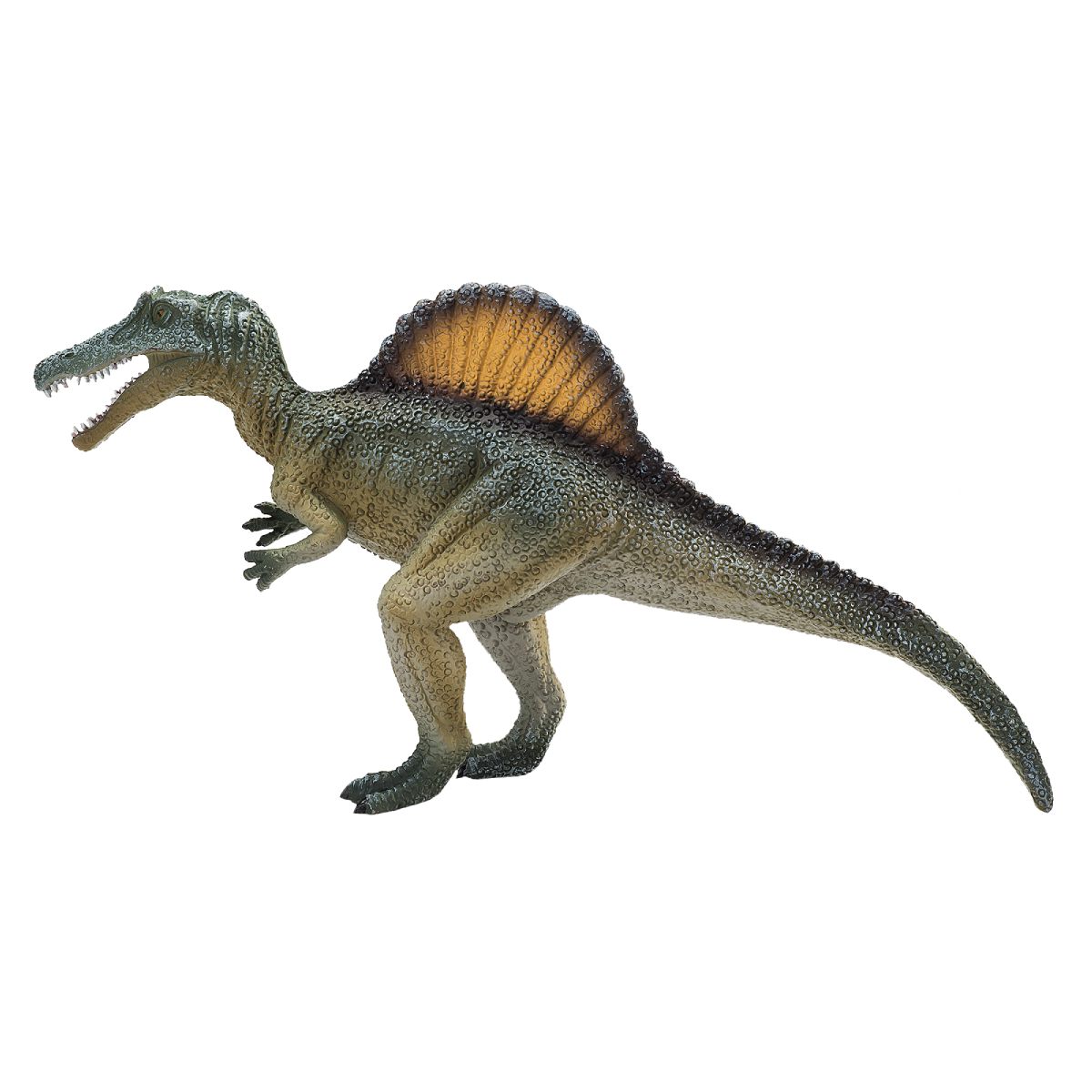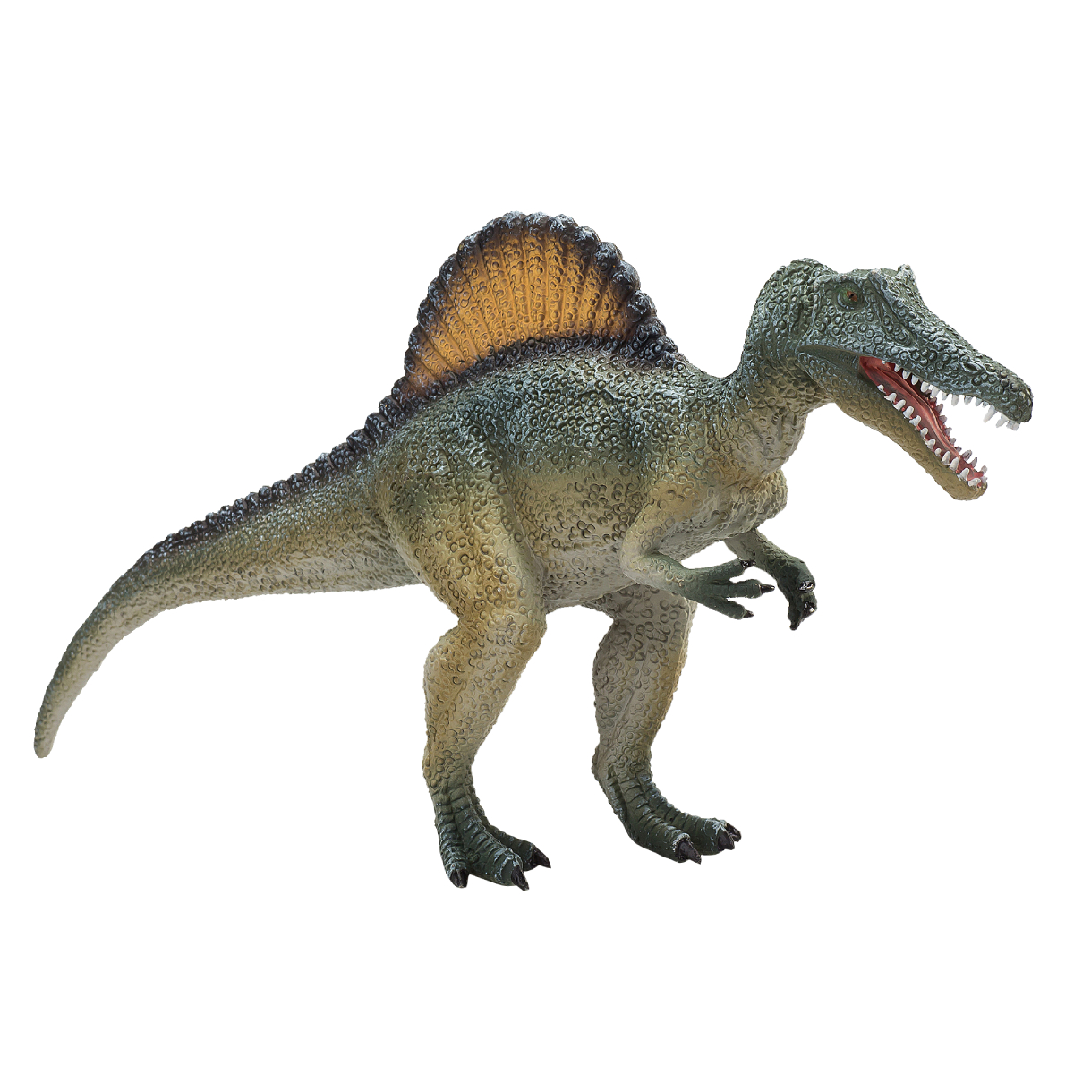 У спинозавра были мощные челюсти с прямыми зубами. У большинства других плотоядных динозавров зубы были изогнутыми. Ученые считают, что это означает, что они трясли свою добычу, чтобы оторвать куски.
