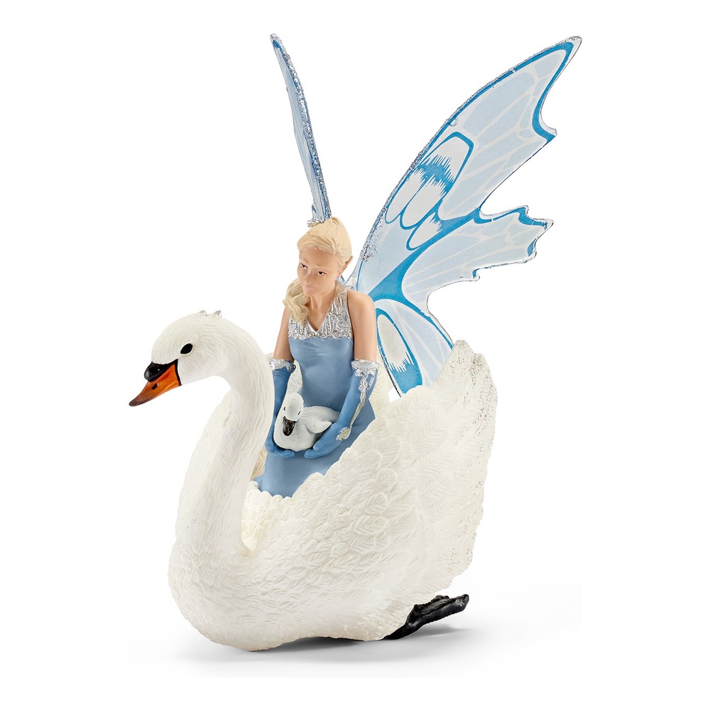 Ларинья выглядит невероятно красиво и органично, ведь её нежные крылышки окрашены в голубой цвет. Да и её длинное шёлковое платье оформлено в нежно-голубых тонах. Катаясь на большом лебеде, эльфийка любит садить к себе на руки его детёныша — маленького и очень хрупкого белого лебедёнка.