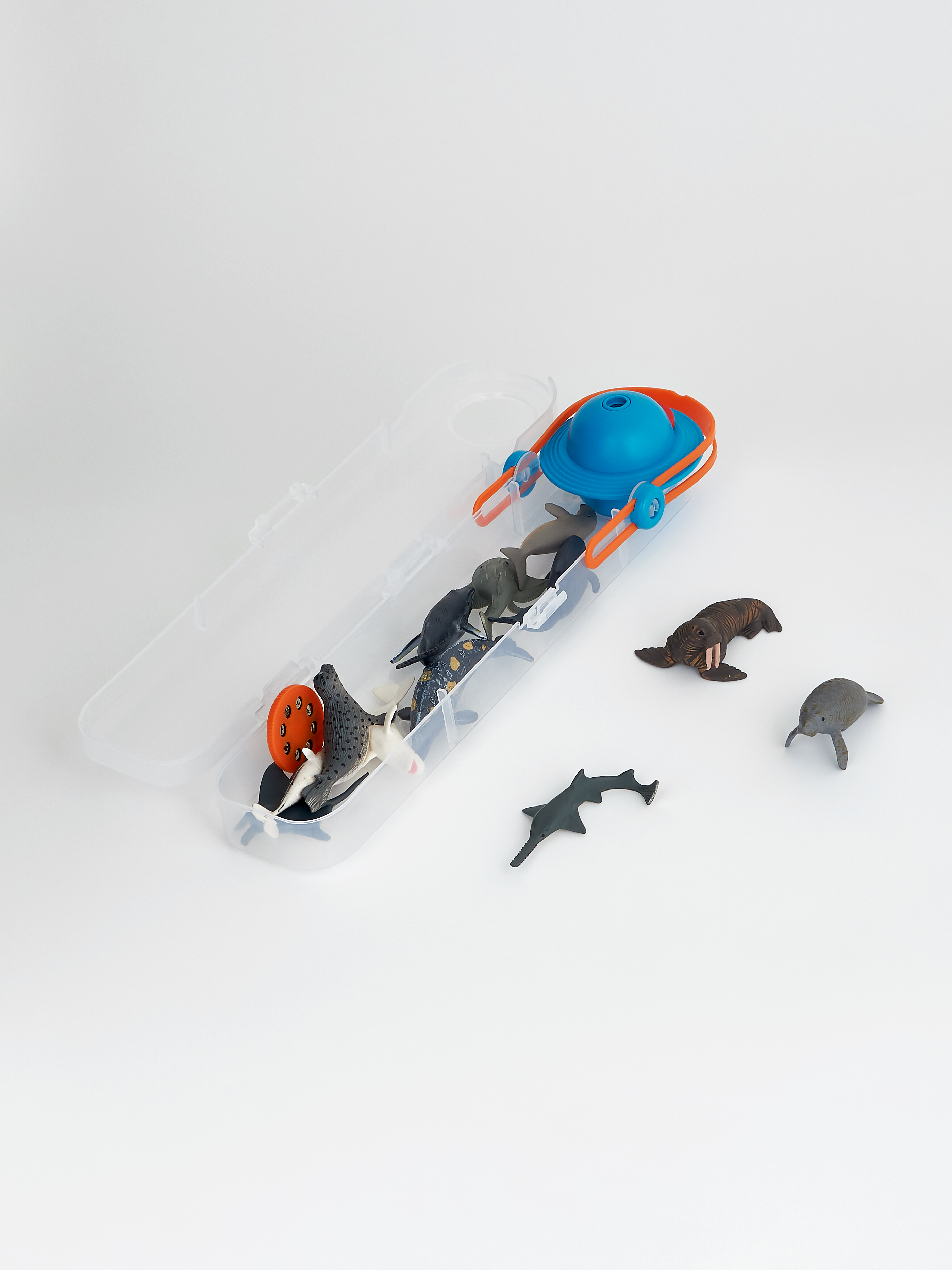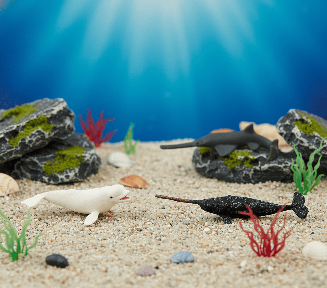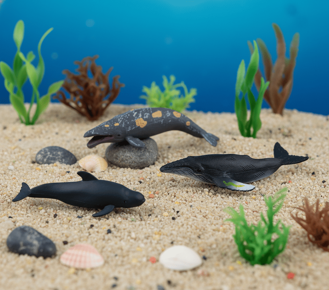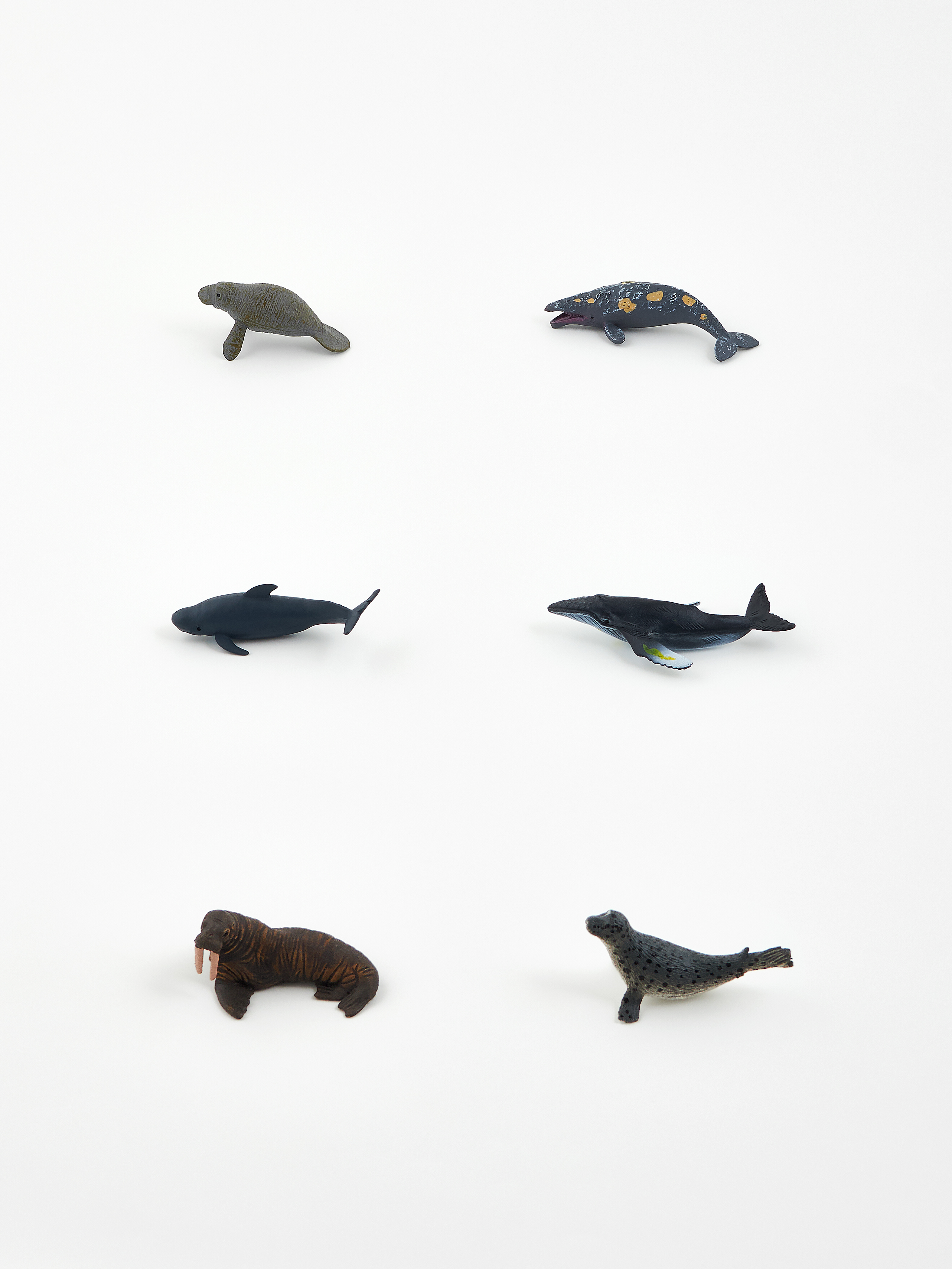 В комплект входят: ламантин, серый кит, черный дельфин, горбатый кит, морж, пятнистый тюлень, мобула, акулий скат, дюгонь, рыба-пила, белуха, нарвал.