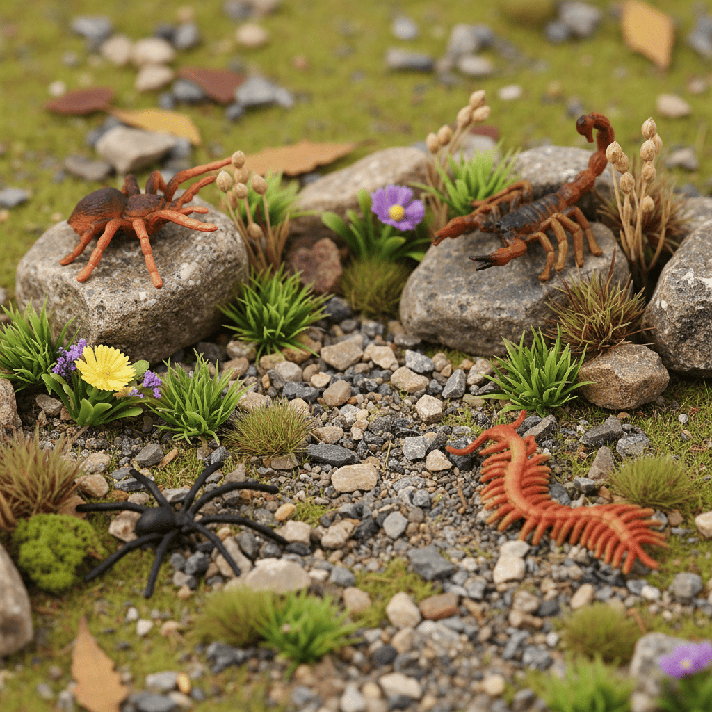 Набор включает 12 фигурок, созданных для развития моторики и творческих навыков у детей разных возрастов. Коллекция предлагает фигурки, идеально подходящие для изучения насекомых и пауков в игровой форме. Они отличаются высокой детализацией, что делает их интересными не только детям, но и взрослым, увлекающимся коллекционированием.