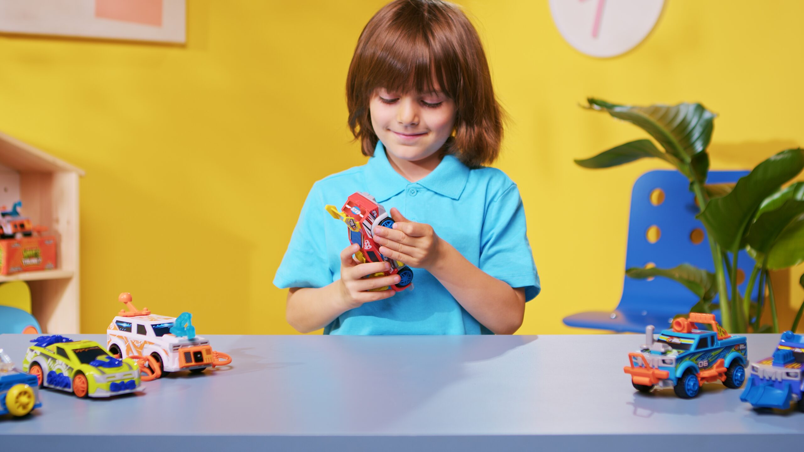 Что лежит в багажнике? Узнайте это с помощью новинки Snap 'N Play от Road Rippers.  В каждую коробку входит 6-дюймовый автомобиль или грузовик и 11 деталей! Откройте багажник, чтобы увидеть, что внутри, и соберите все сменные аксессуары.