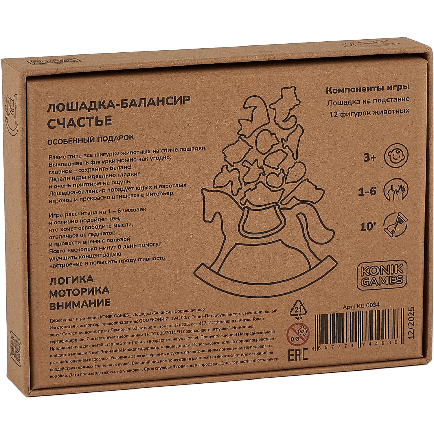 Балансир «Лошадка» — это не просто игрушка, а тренажёр для ума, ловкости и воображения. В наборе деревянная лошадка и 12 фигурок зверят, которых нужно аккуратно ставить на спинку, сохраняя равновесие и не давая конструкции рухнуть. Это увлекательная головоломка, которая захватывает и детей, и взрослых.