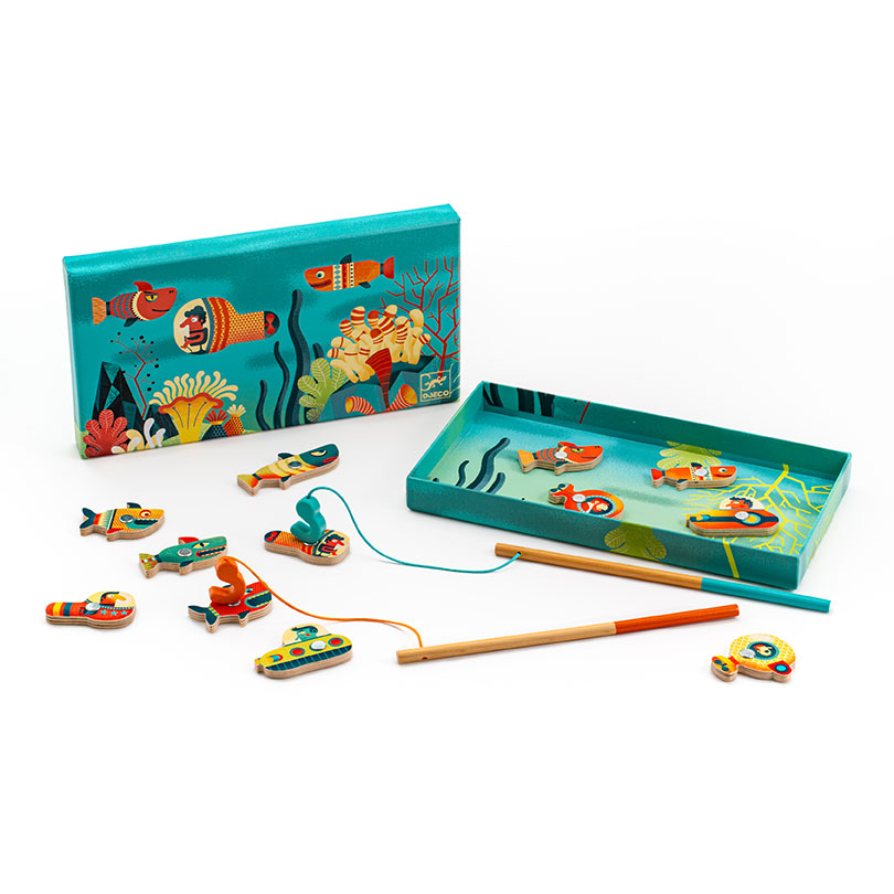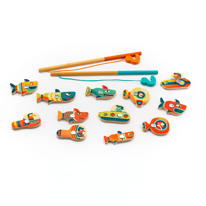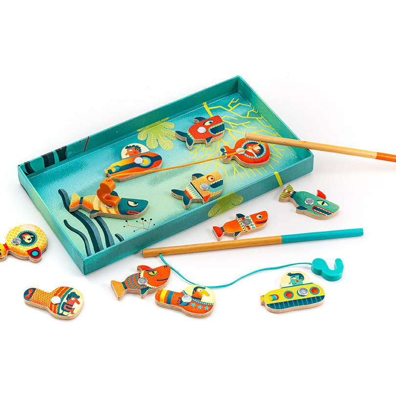 Игра Магнитная рыбалка от французского производителя Djeco (Джеко) - это интереснейшая развивающая игра, в которой малышу предстоит выловить 6 больших акул и 6 подводных кораблей. В наборе можно найти 2 деревянные удочки с безопасным магнитным крючком и 12 деревянных магнитных фигурок. Магнитная рыбалка от Djeco поможет не только развить ловкость, моторику рук ребёнка, внимательность и усидчивость, а также быстроту реакции и дух соперничества. Деревянные магниты экологически безопасны, приятны для детских ручек и способствуют развитию тактильных ощущений. Набор продается в красивой подарочной коробке. Французская компания Джеко уже более 60 лет производит развивающие игрушки и игры для детей, наборы для творчества, а также детали интерьера детской комнаты и детские аксессуары. Все товары Джеко отличаются высочайшим качеством, необычной идеей исполнения. Дизайн и иллюстрации к игрушкам Джеко разрабатываются совместно со всемирно известными художниками.
