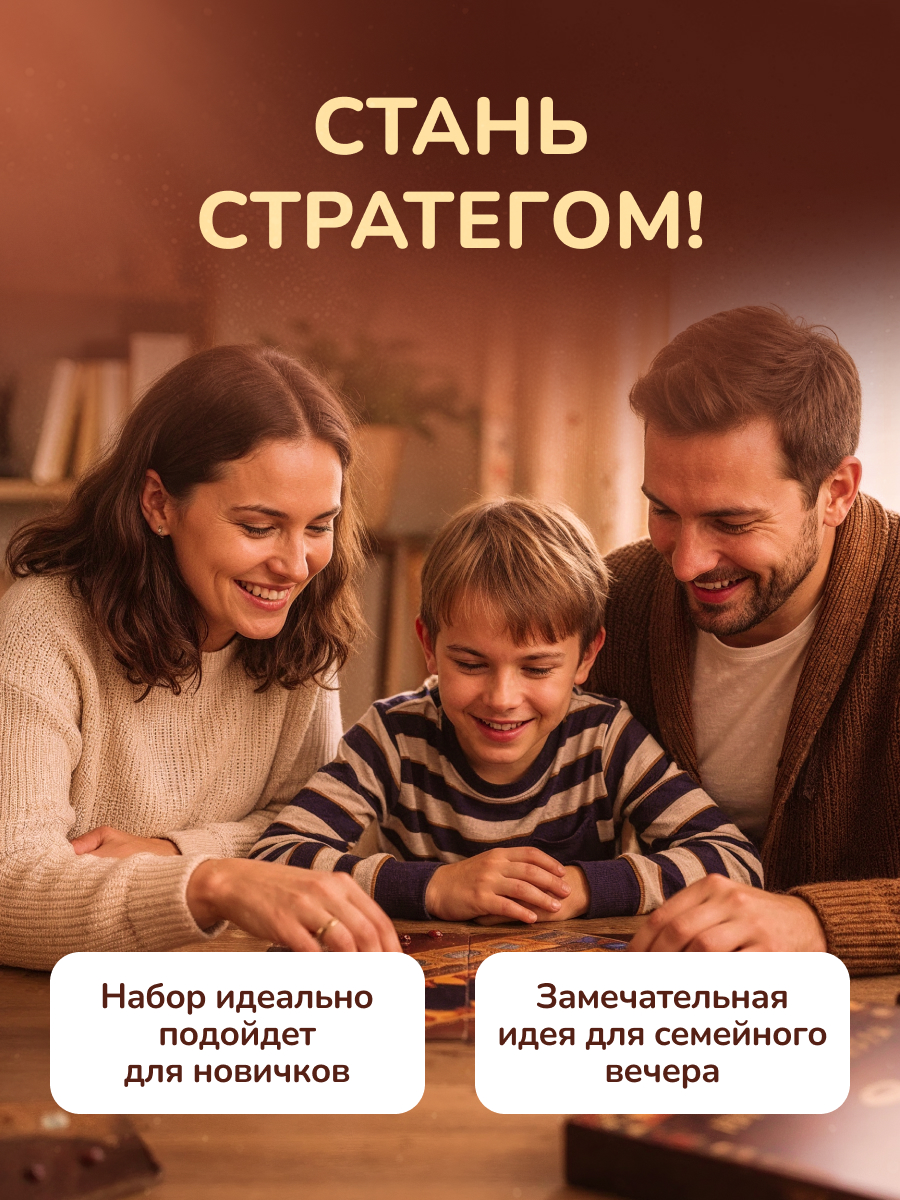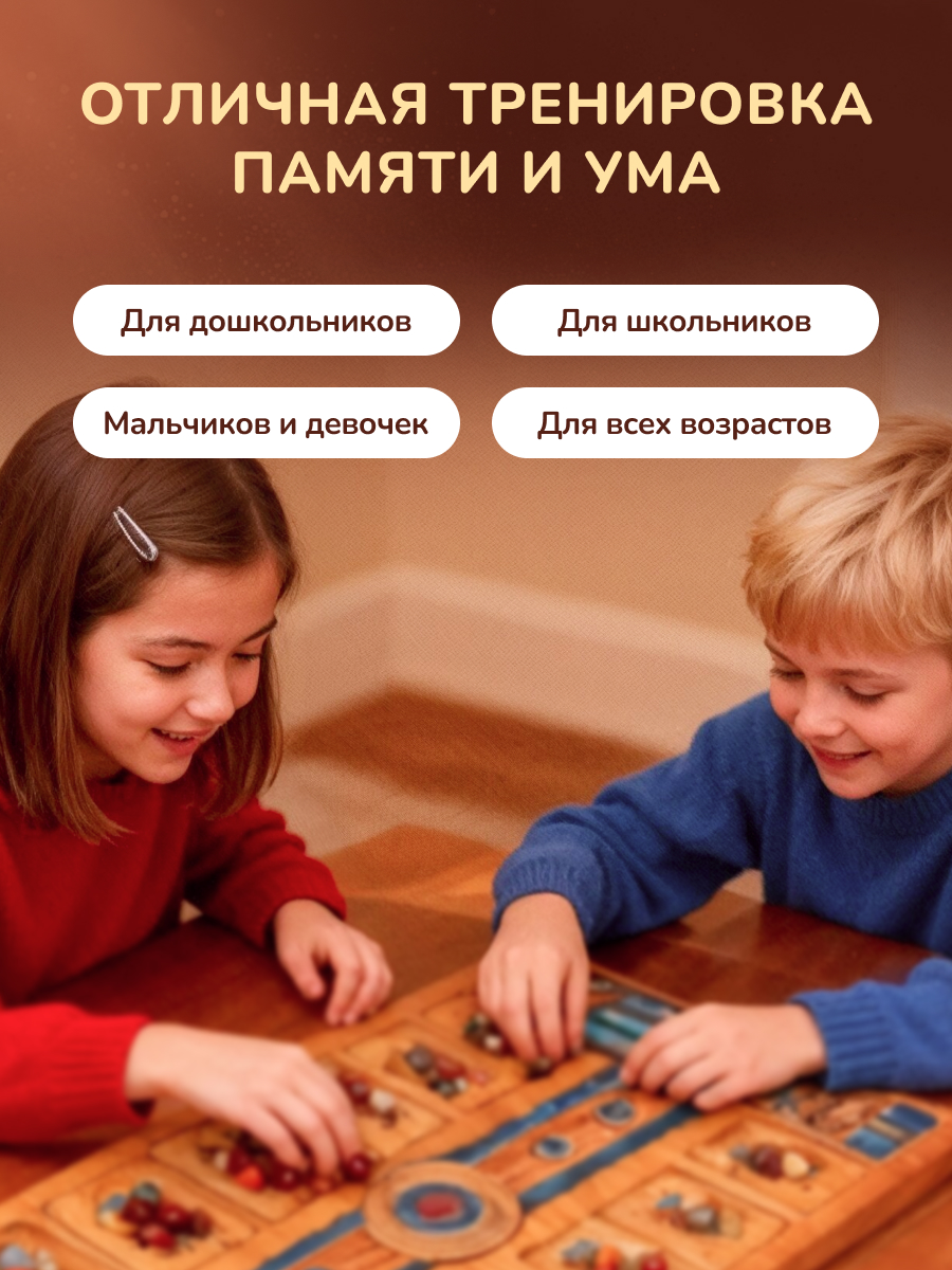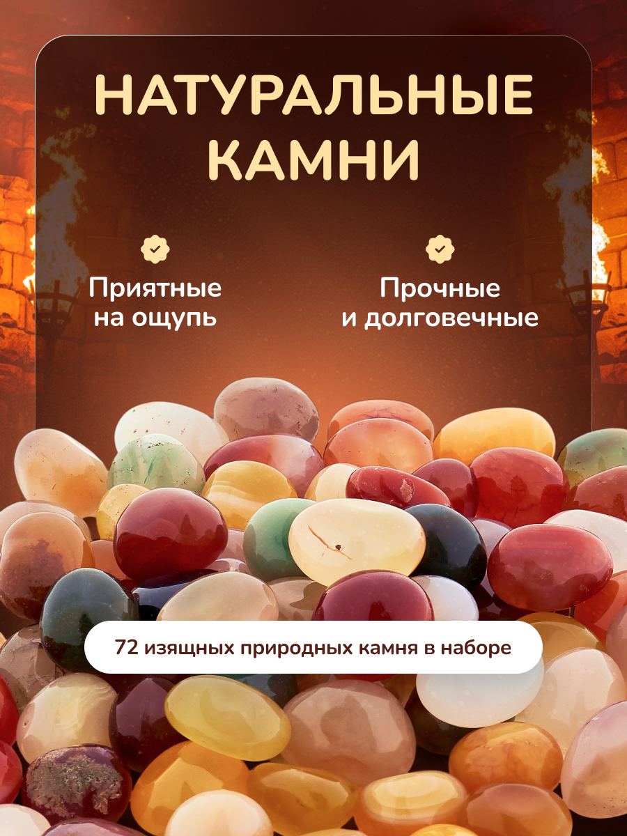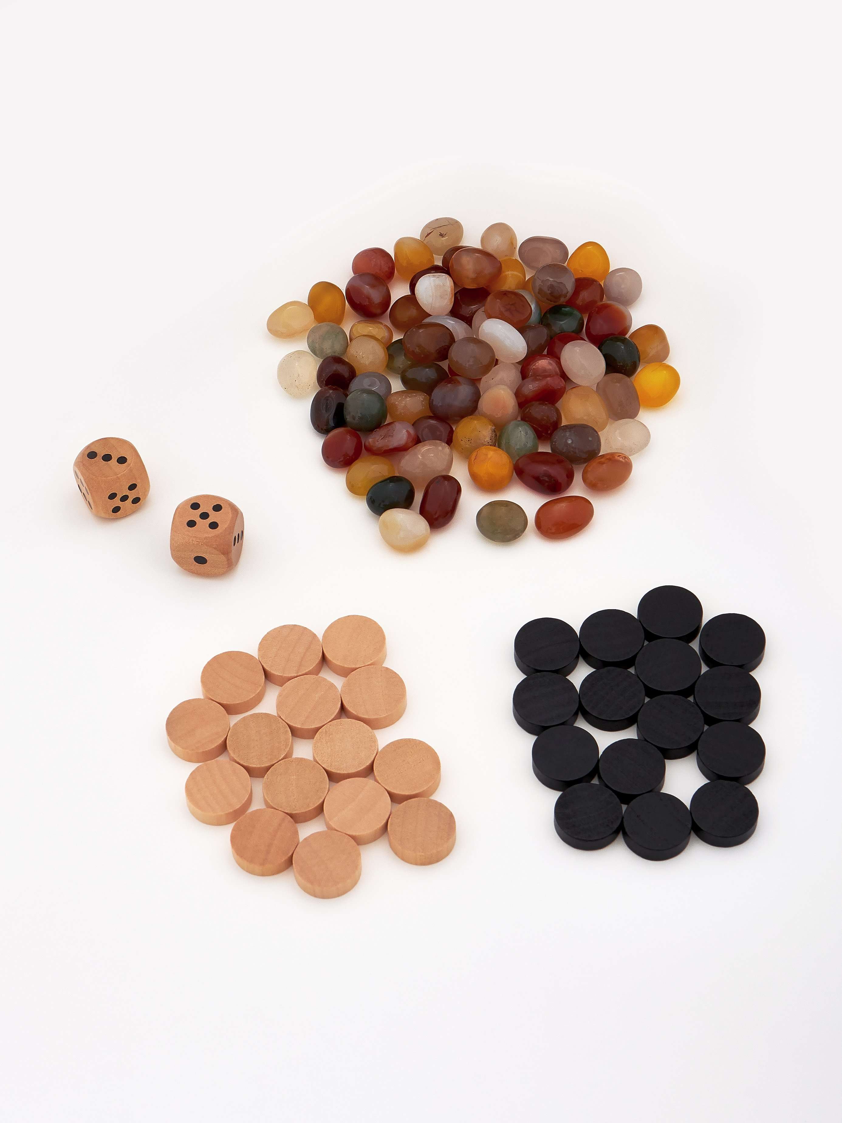 Потрясающее качество материалов: Натуральные камни и деревянные фишки дарит приятные ощущения и гарантирует, что игра станет вашим спутником на долгие годы.