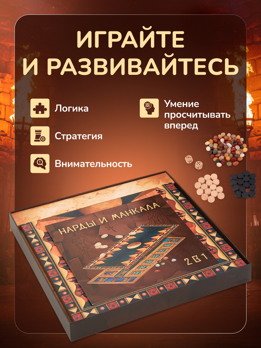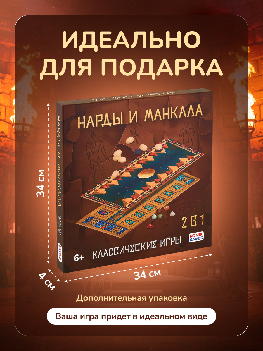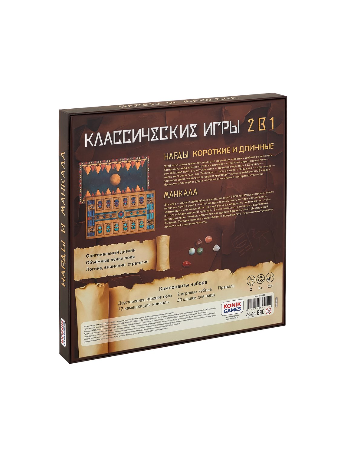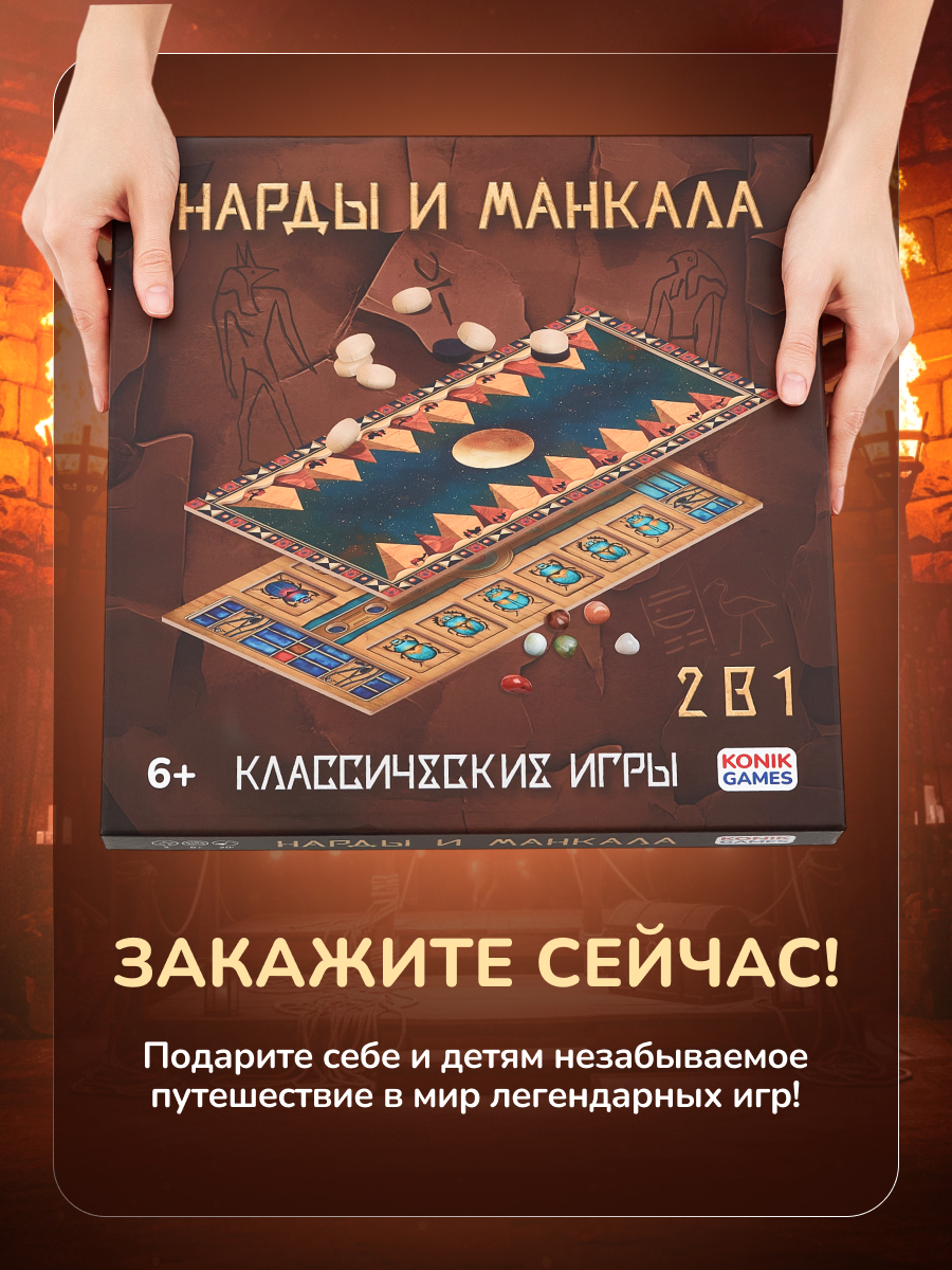 Нарды и Манкала 2в1 от Konik Games. Это уникальный набор двух классических настольных игр. Игры выполнены из премиальных материалов, что гарантирует долговечность и особые тактильные ощущения. Набор идеально подходит для игры дома, в дороге или для украшения игрового стола.