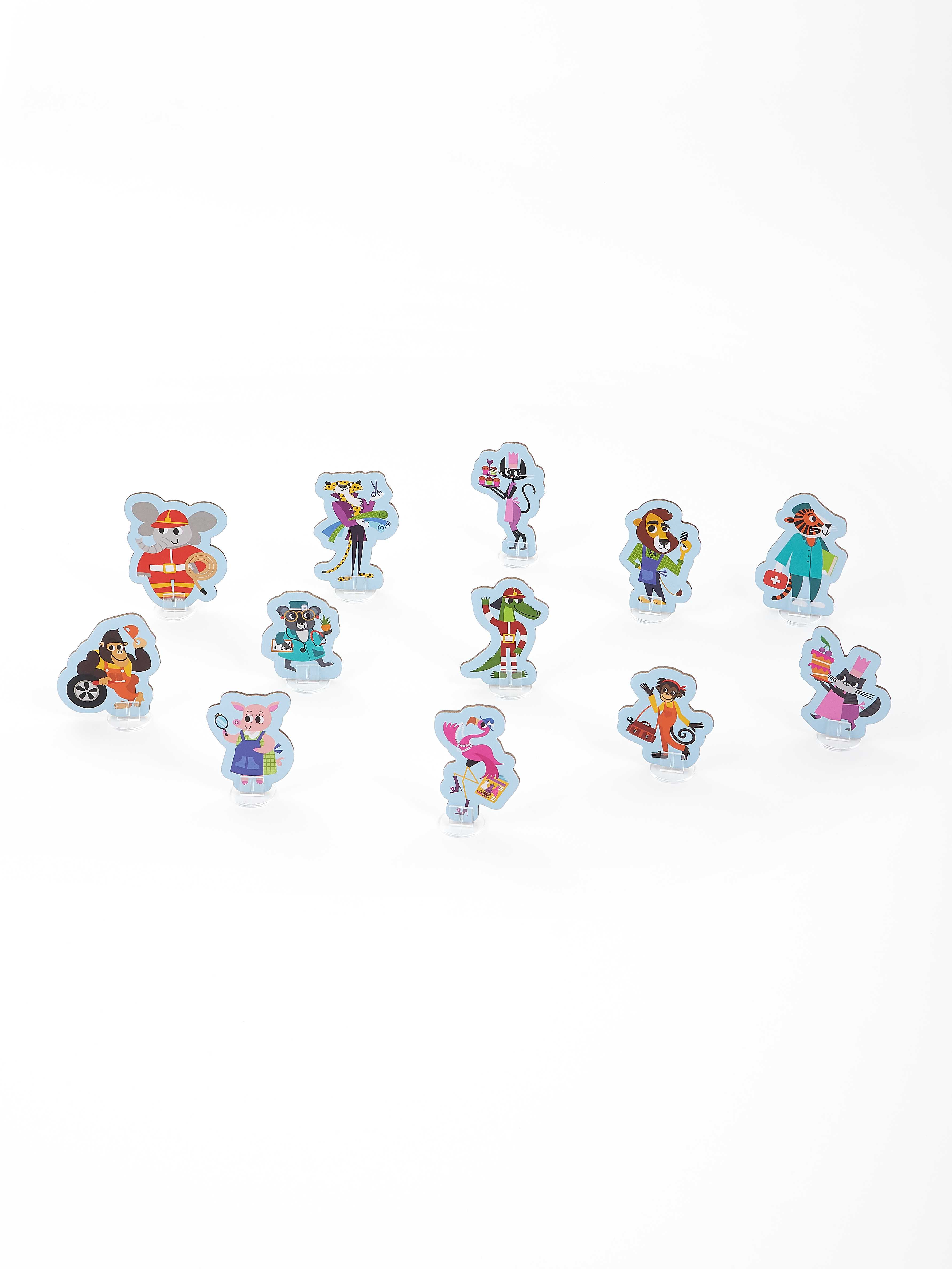 В комплект входят 12 фигурок персонажей, с которыми можно играть отдельно в разные сюжетно-ролевые игры.