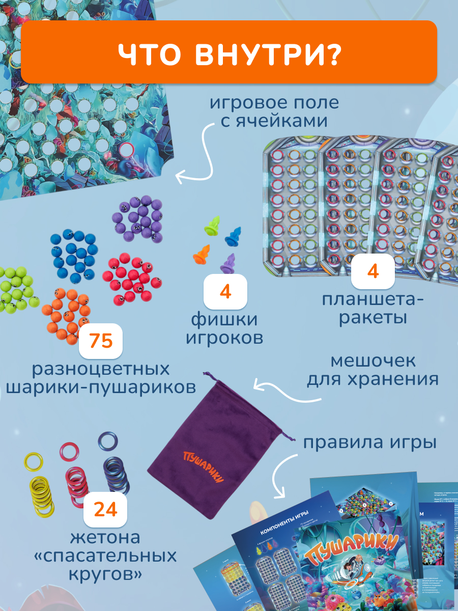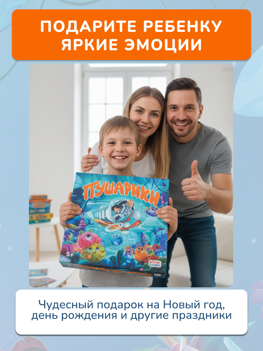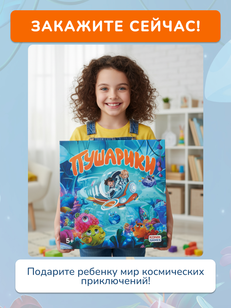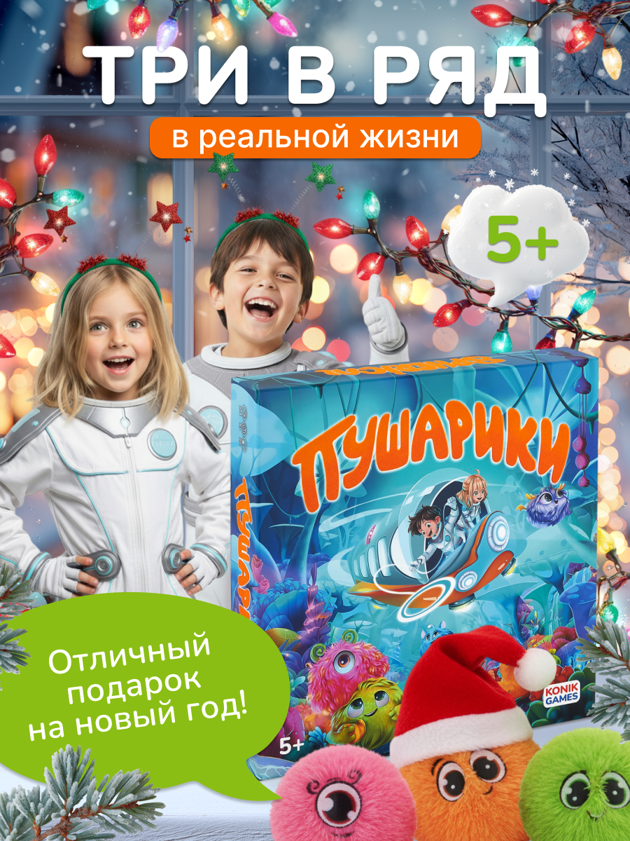 ПУШАРИКИ от Konik Games — собирайте шарики в ряд! Простая и увлекательная настольная игра.