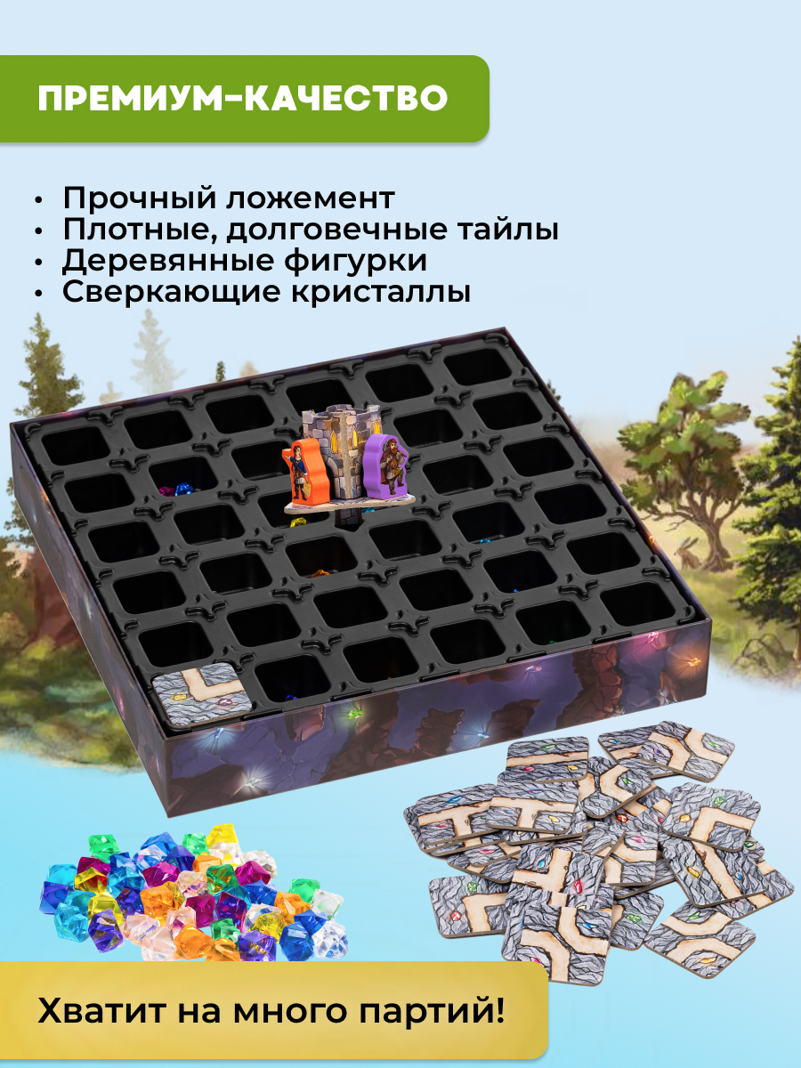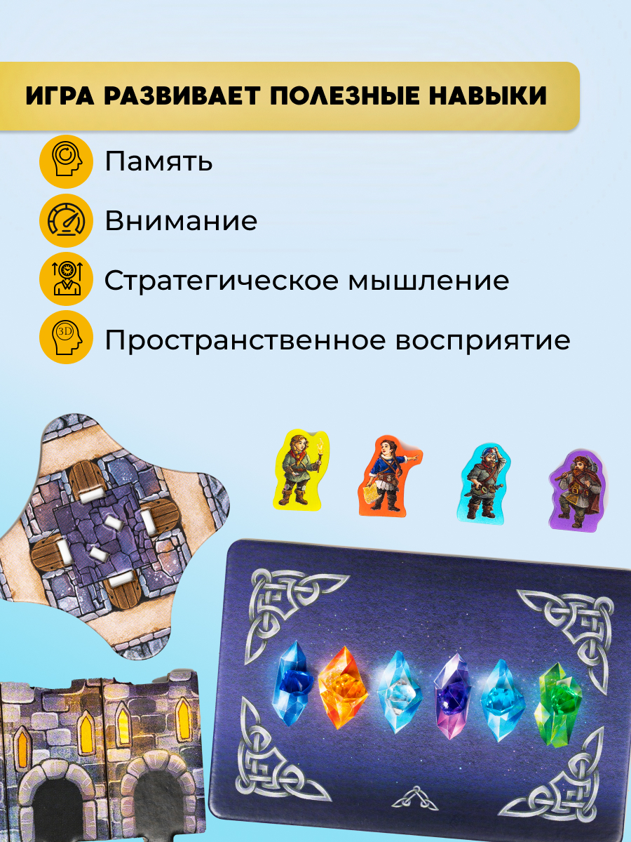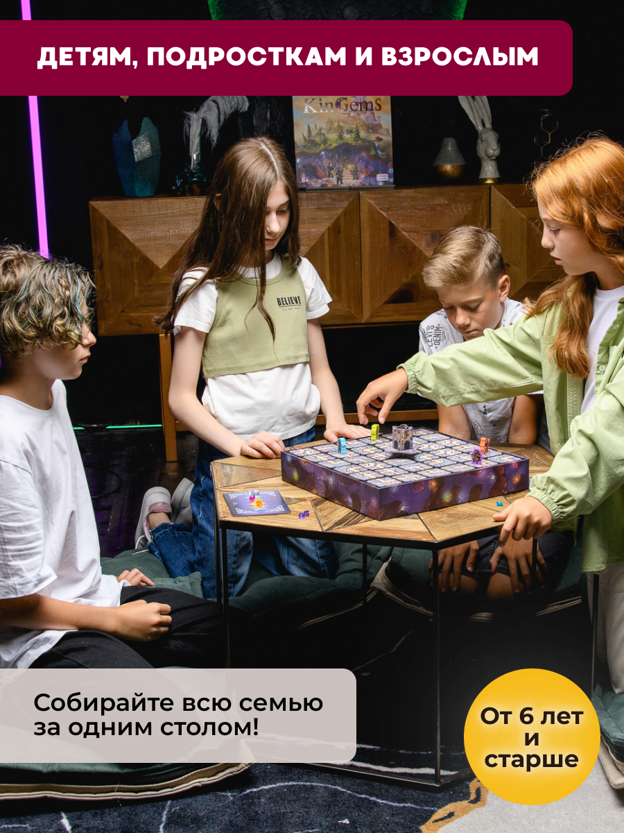 Игра рассчитана на 2-4 игрока, подходит для детей от 6 лет. Также в «Самоцветы короля» с азартом играют и взрослые, так что она подходит для всей семьи и компании друзей. Все компоненты изготовлены из высококачественных материалов, что гарантирует долгий срок службы.