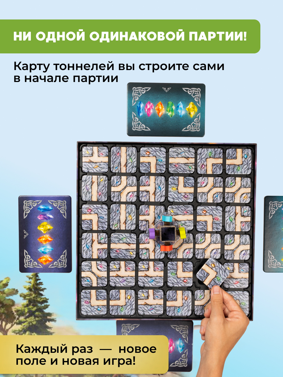 Король гномов Теовальд пожелал создать самую прекрасную корону во всем Чароземье. Он собрал команду лучших кладоискателей и каждому поручил особое задание. Им необходимо отправиться в шахты горы Валгорион, чтобы раздобыть драгоценные камни. Но зачарованные туннели то и дело меняются, образуя лабиринты. Участникам нужно прокладывать все новые маршруты, чтобы быстрее всех собрать самоцветы и преподнести их королю.